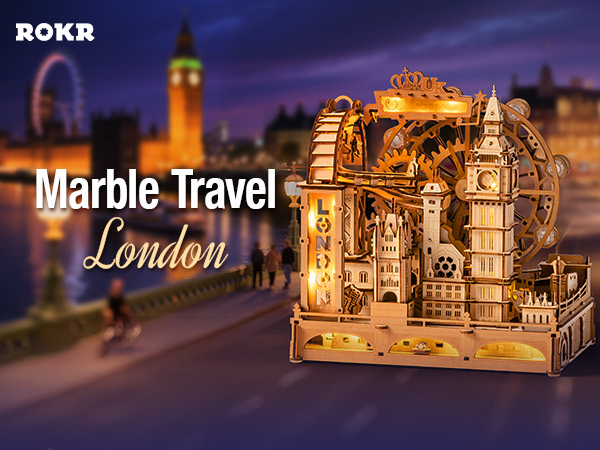 Brand: ROKR Components: 431 laser-cut wooden components Features: Mechanical marble track, LED lighting, movable gears Power Supply: USB-C port Building Time: 6+ hours Dimensions: 22.5cm L x 15...