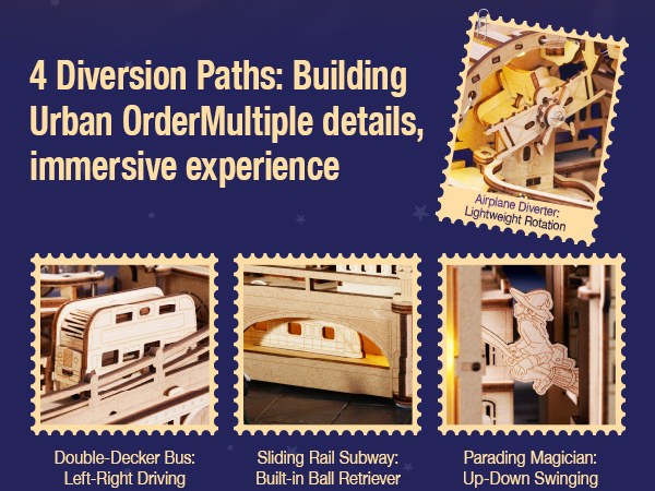 Experience the wonder of this functional marble track! A steel ball travels through four interactive landmarks, creating a captivating display of movement and mechanics. This perfect fusion of art and engineering delights both teens and adults.