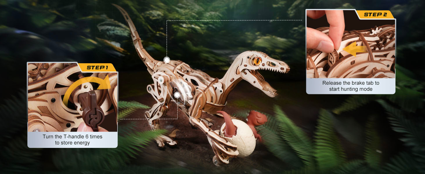 Simply wind up the exposed gear mechanism and watch your dinosaur come to life! Precision engineering creates a realistic walking motion as the predator moves forward with its unique egg—all without batteries.
