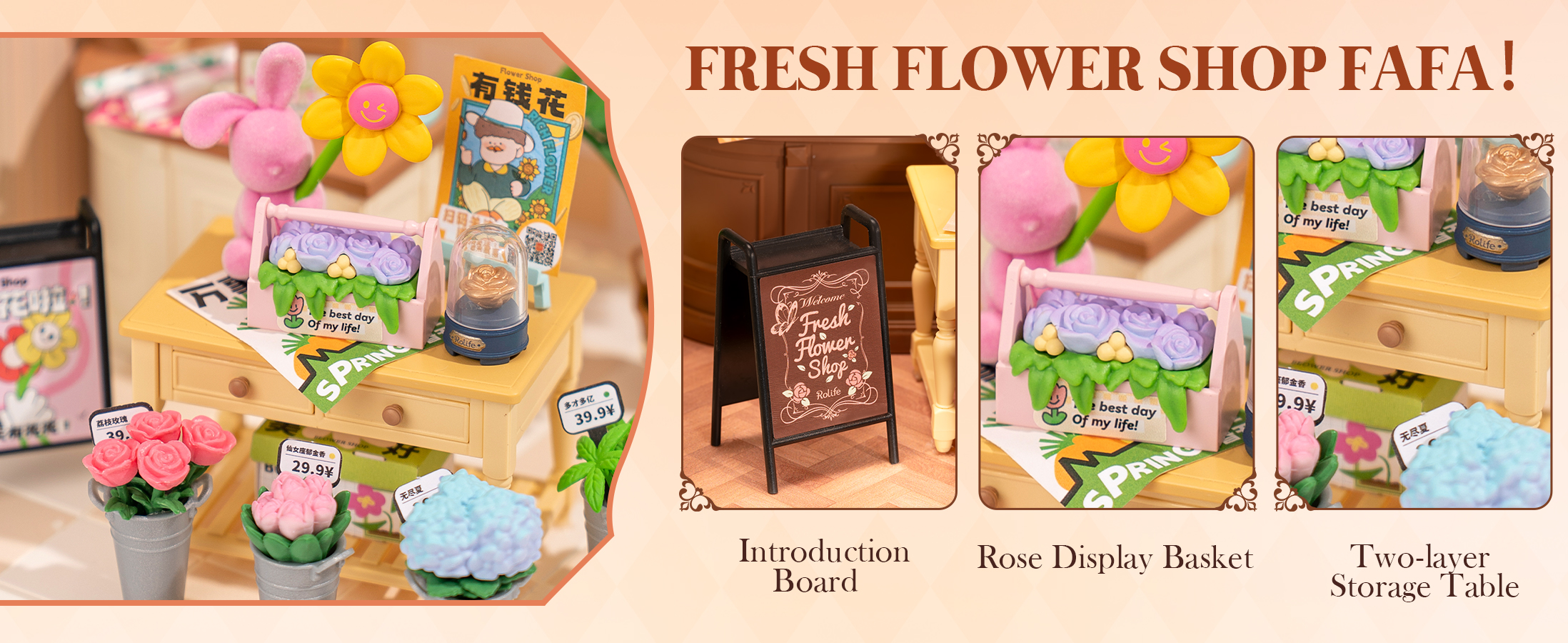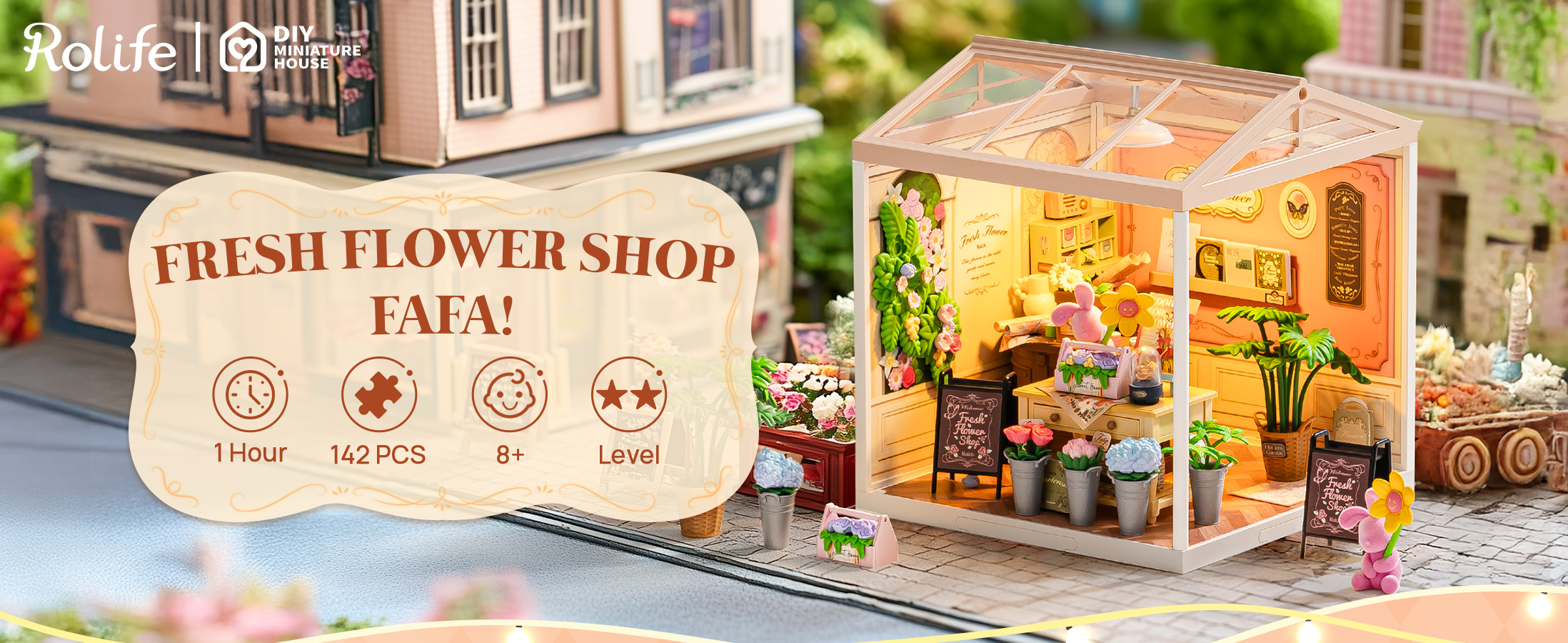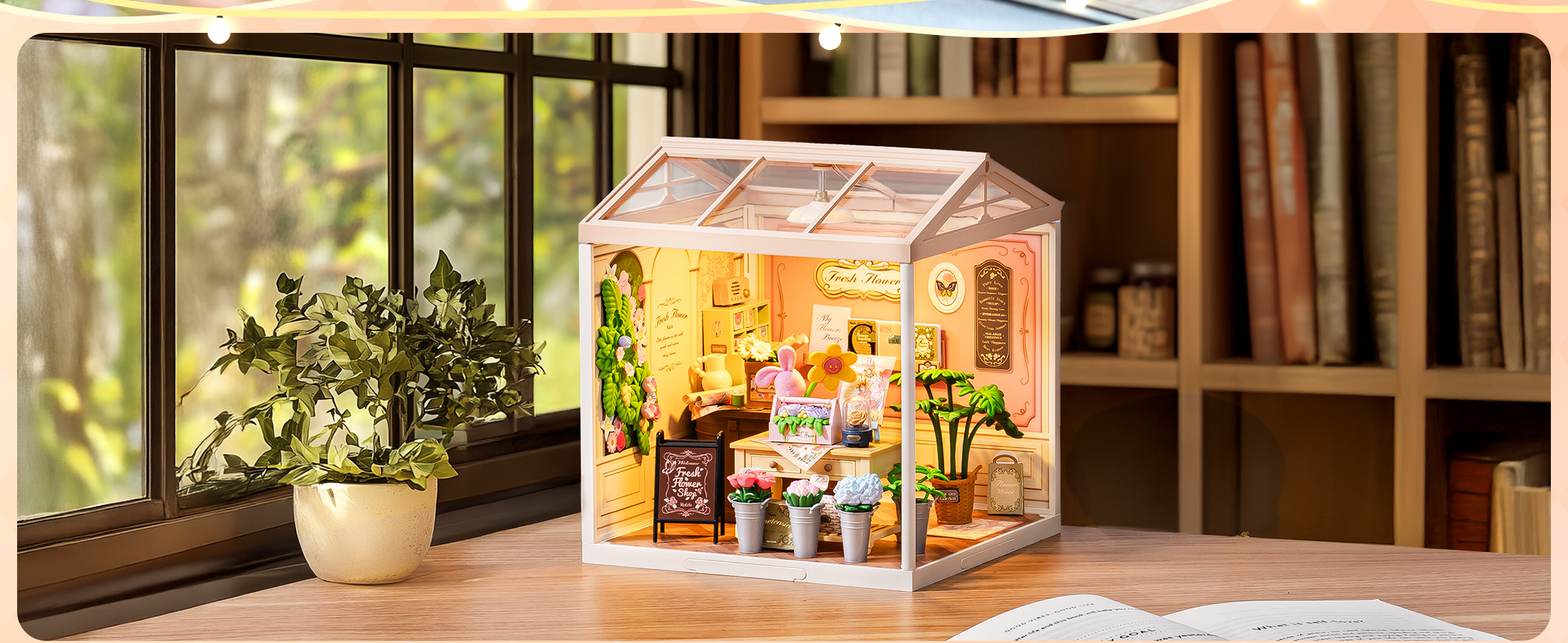 Rolife Fresh Flower Shop Super Creator Miniature House DW017B Make someone happy today with a colorful bouquet from the Rolife Fresh Flower Shop, your friendly flower seller right around the corner...