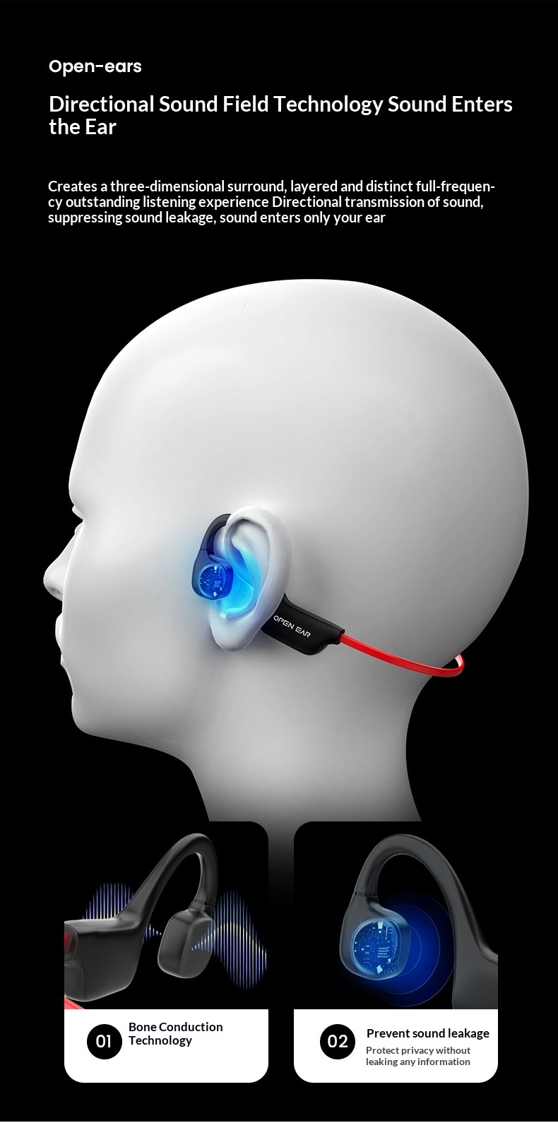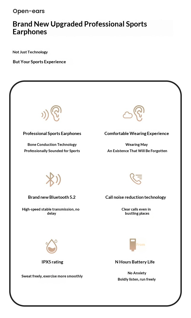 Rondo Bluetooth Outdoor Sports Noise-Canceling Ergonomic Bone-Conduction Headphones