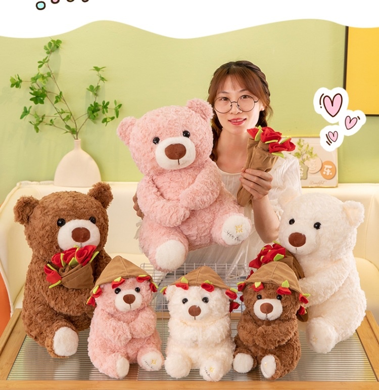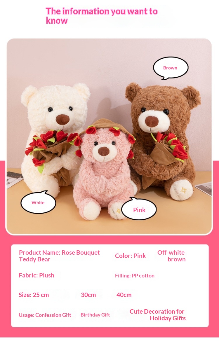 Product information:Type: Doll Colors: White bouquet bear, brown bouquet bear, pink bouquet bear Filling material: PP cotton Height: 25 cm, 30 cm, 40 cm Packing list: 1* Plush Toy Product Im...