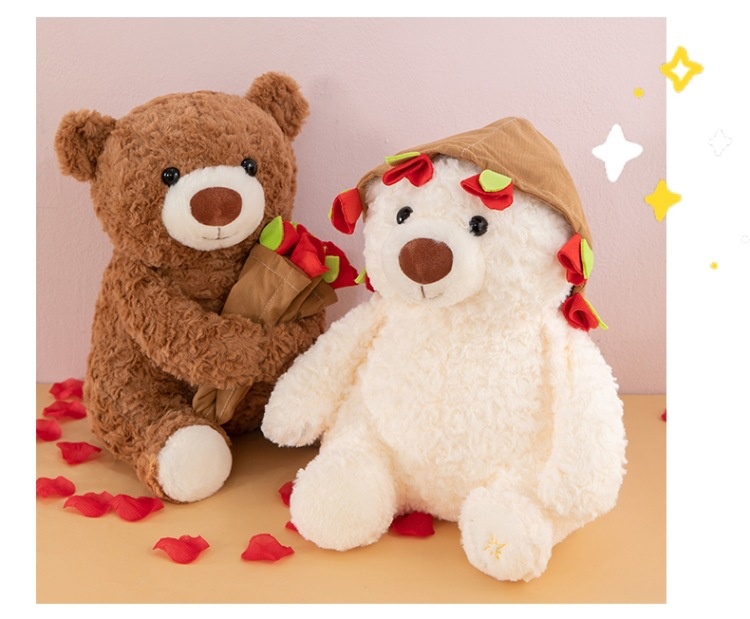 Colors: White bouquet bear, brown bouquet bear, pink bouquet bear