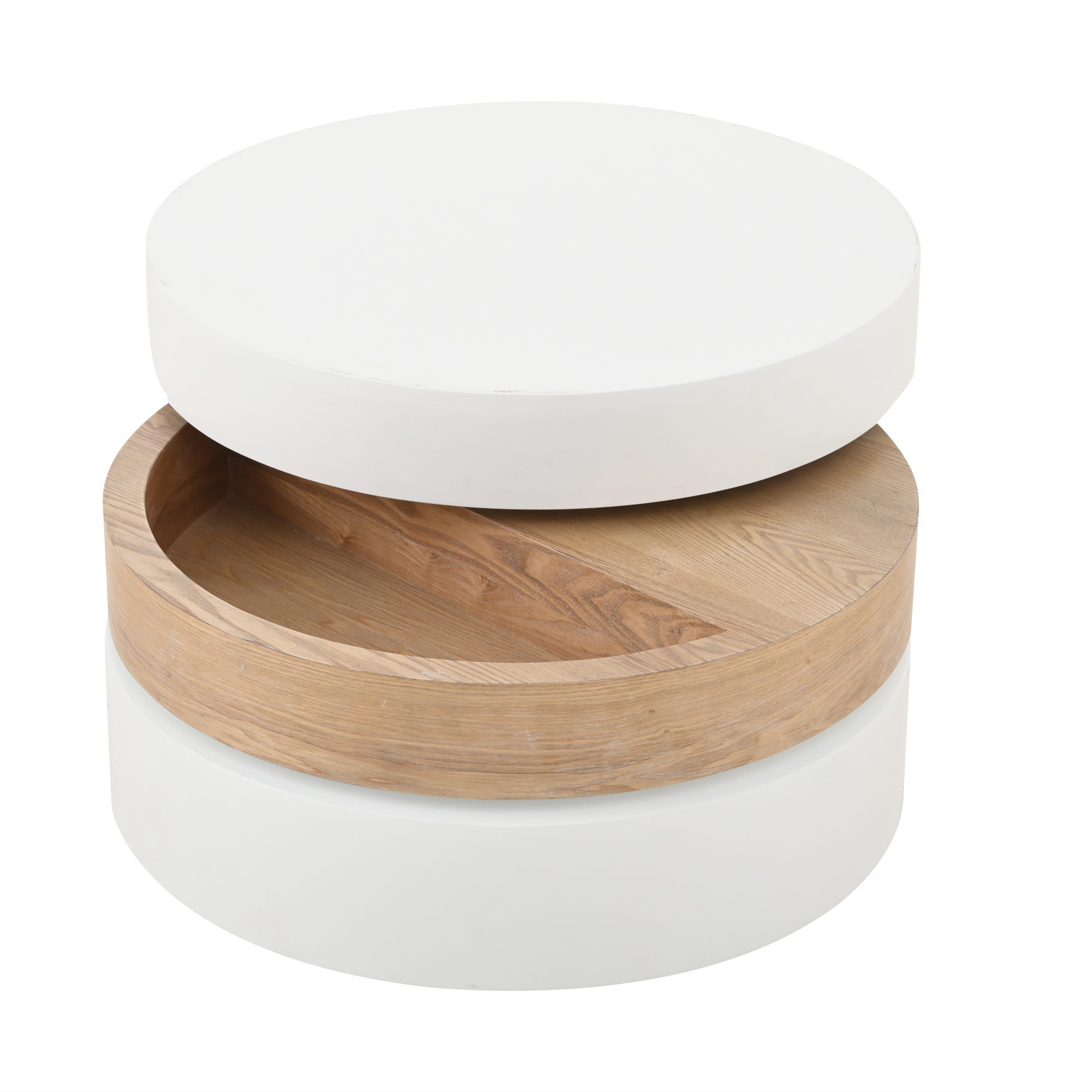 Product Name:Round rotating coffee table, 360° rotating tabletop, end table, 3 layer sofa sidetable, Hidden storage space, 60*60*35,1 cm, MDF, white +wood