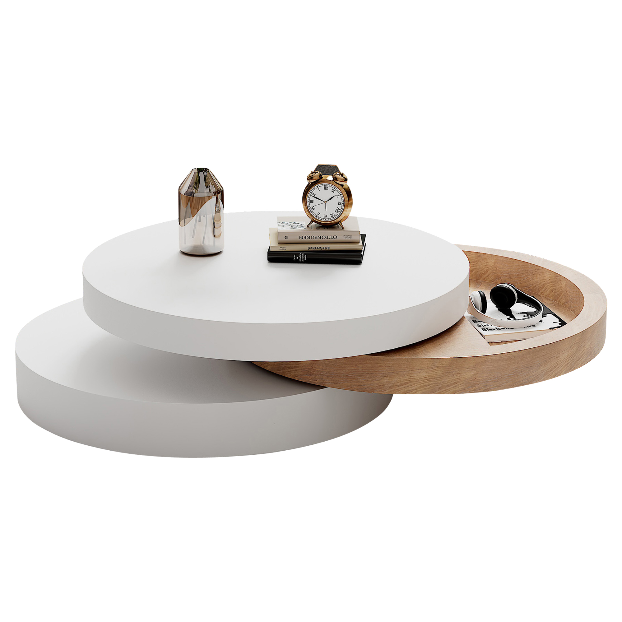 Round Rotating Coffee Table, 360 Rotating Tabletop, End Table, 3 Layer Sofa Sidetable, Hidden Storage Space, 60x60x35,1 Cm, MDF, White Wood