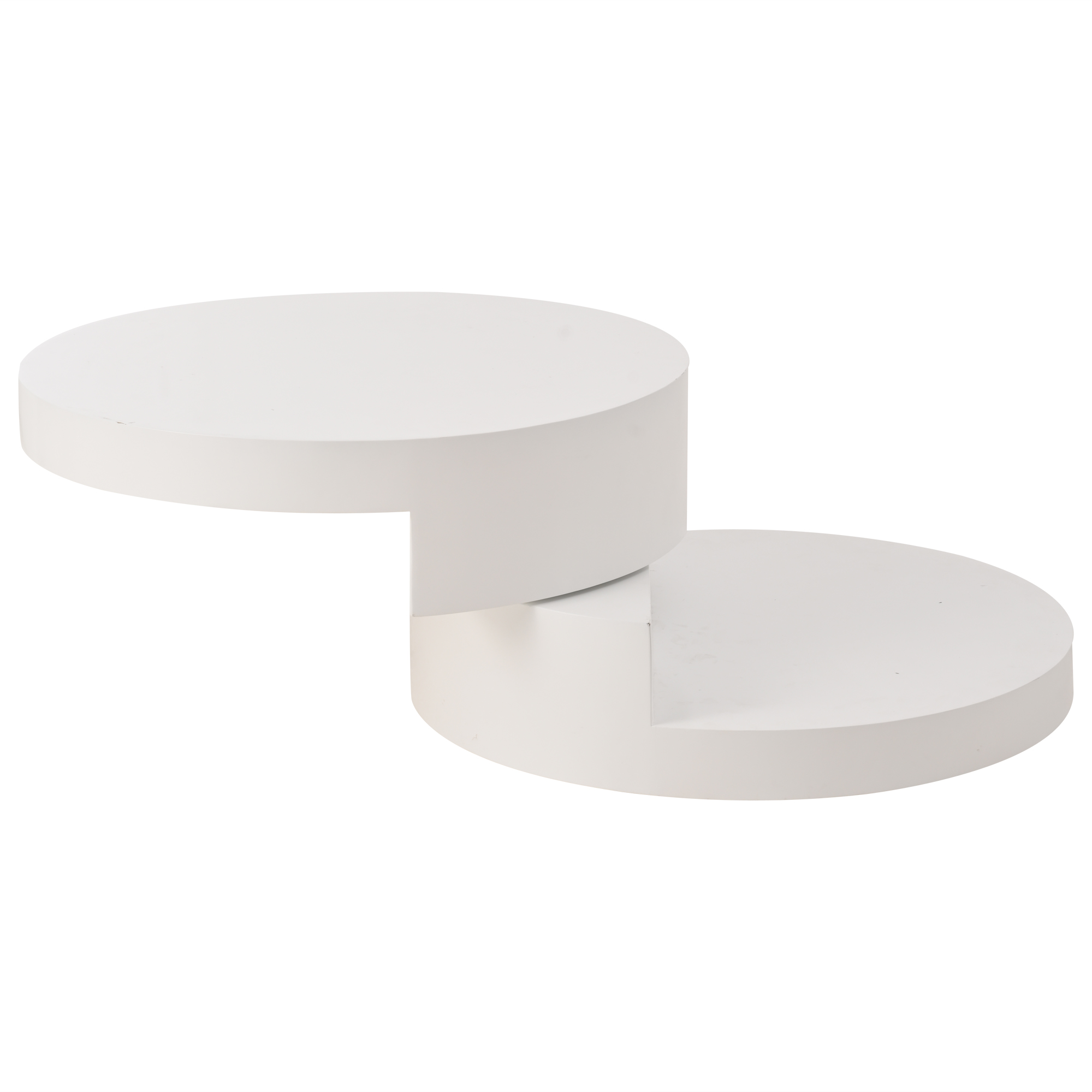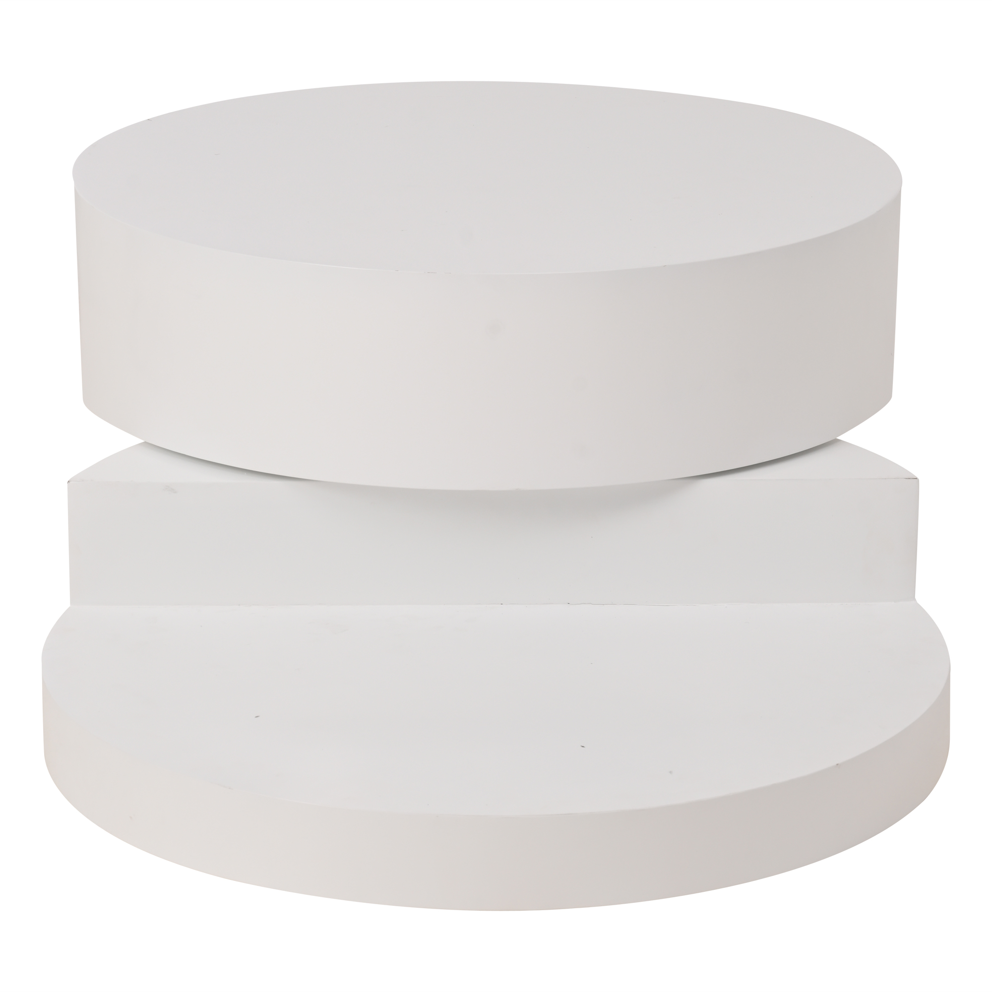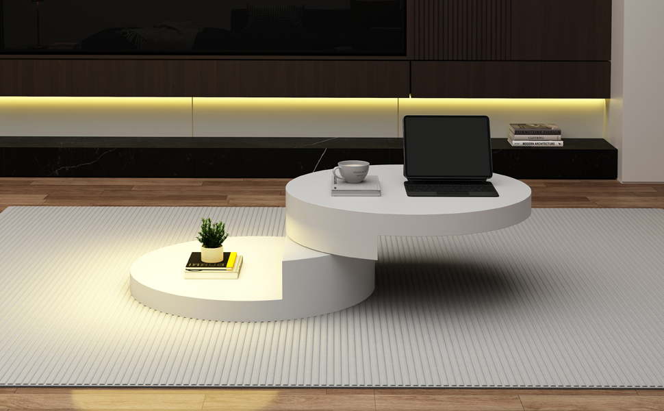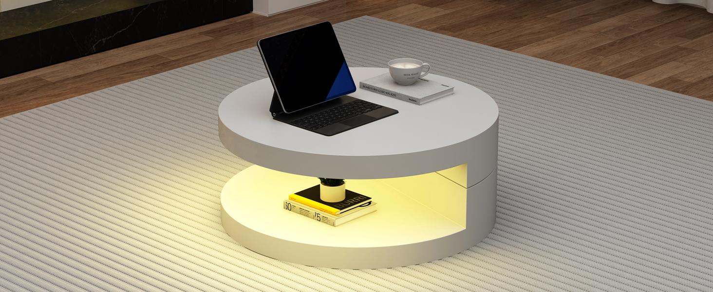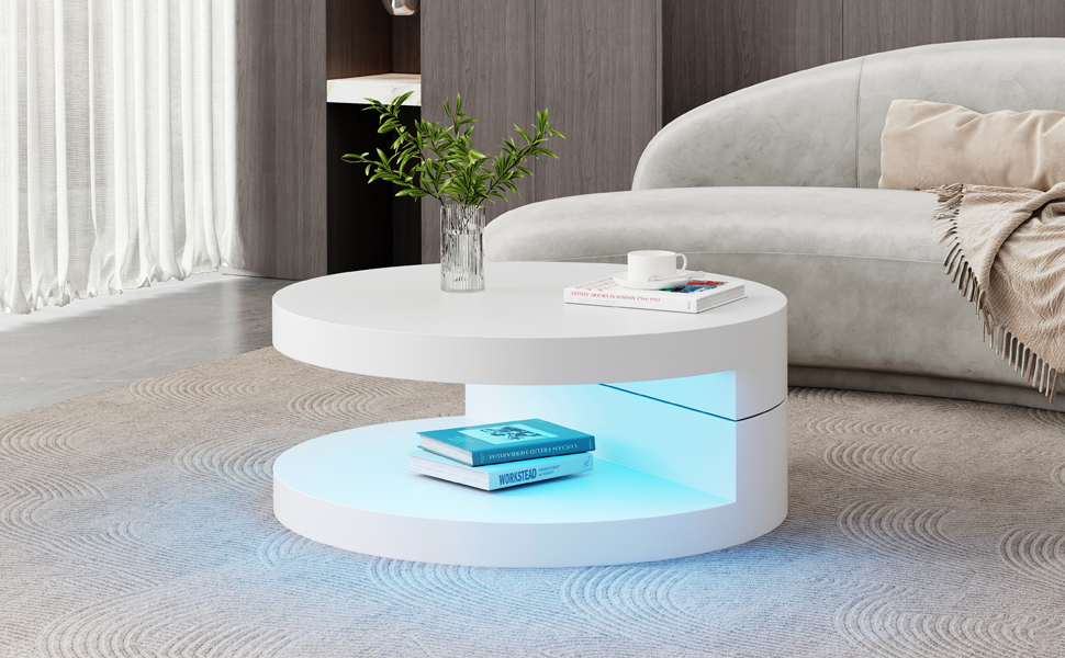 Product Name:Round rotating coffee table with LED lights, 360° rotating tabletop, end table, double-layer sofa sidetable, Open storage space, 70*70*35.5cm, MDF, white