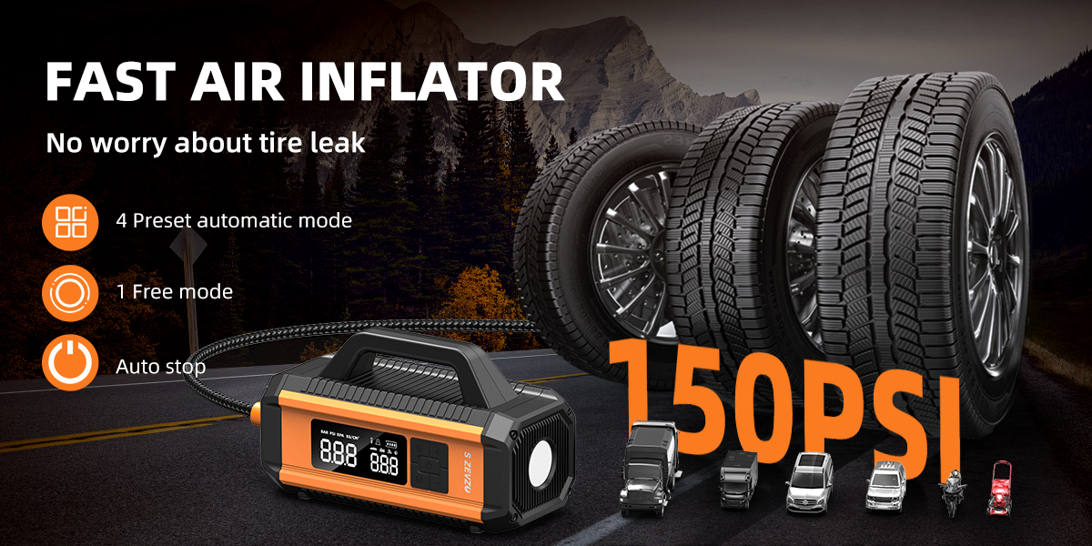S ZEVZO 2 In 1 Car Jump Starter With Air Compressor Air Inflator Battery Charge Jumper Booster Power Bank Flashlight