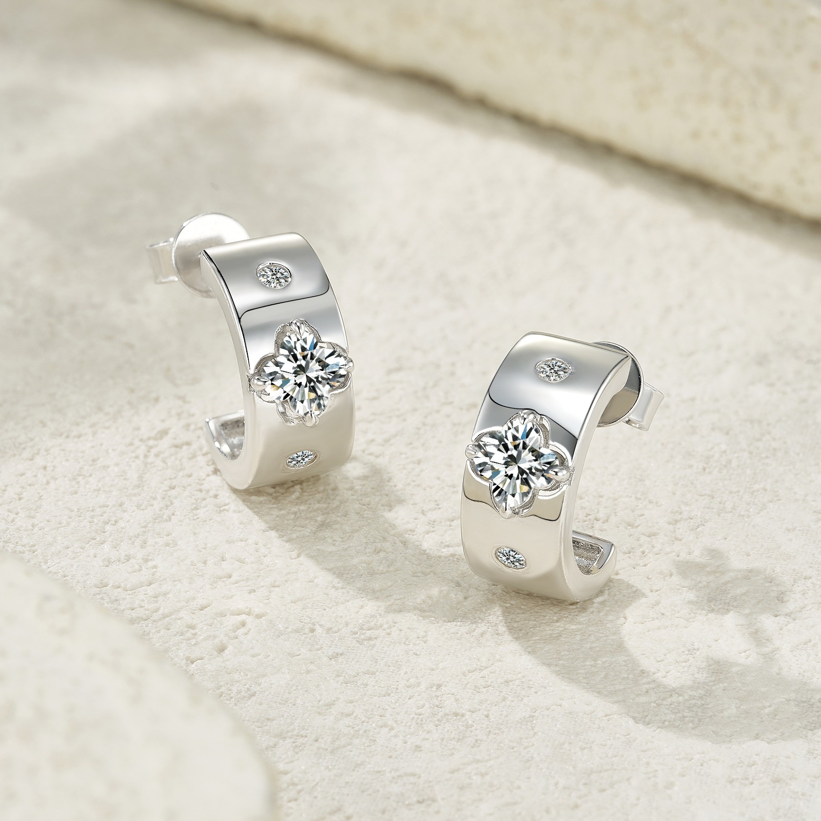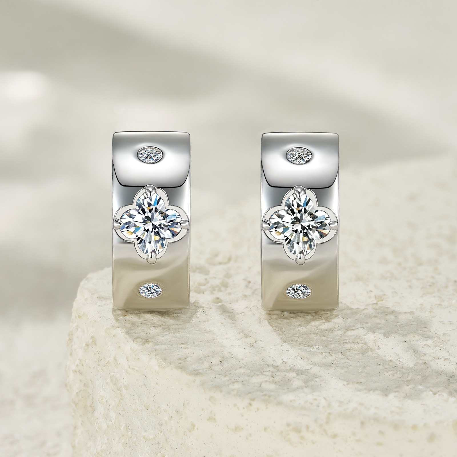S925 Silver Moissanite Cross-Border Sterling Silver Flower Earrings With A Light Luxury