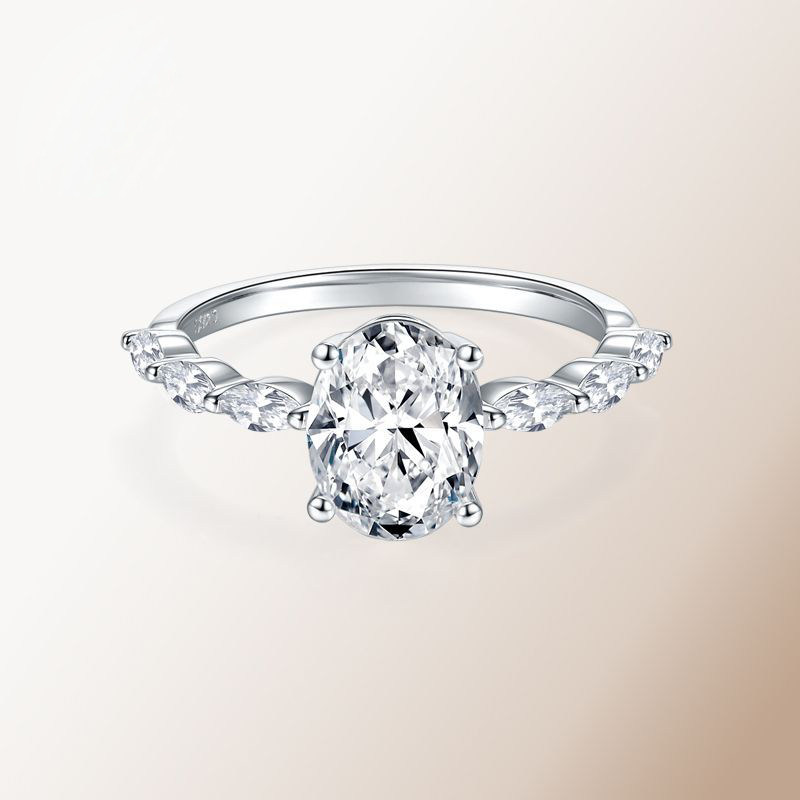 S925 Silver Pigeon-Egg-Shape Simulated Moissanite Diamond Ring