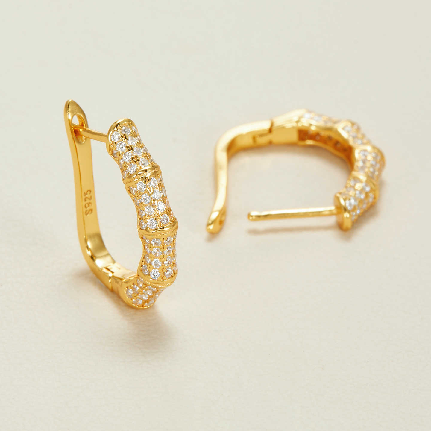 S925 Sterling Silver Handcrafted Bamboo-Style Earrings With Zircon Inlays