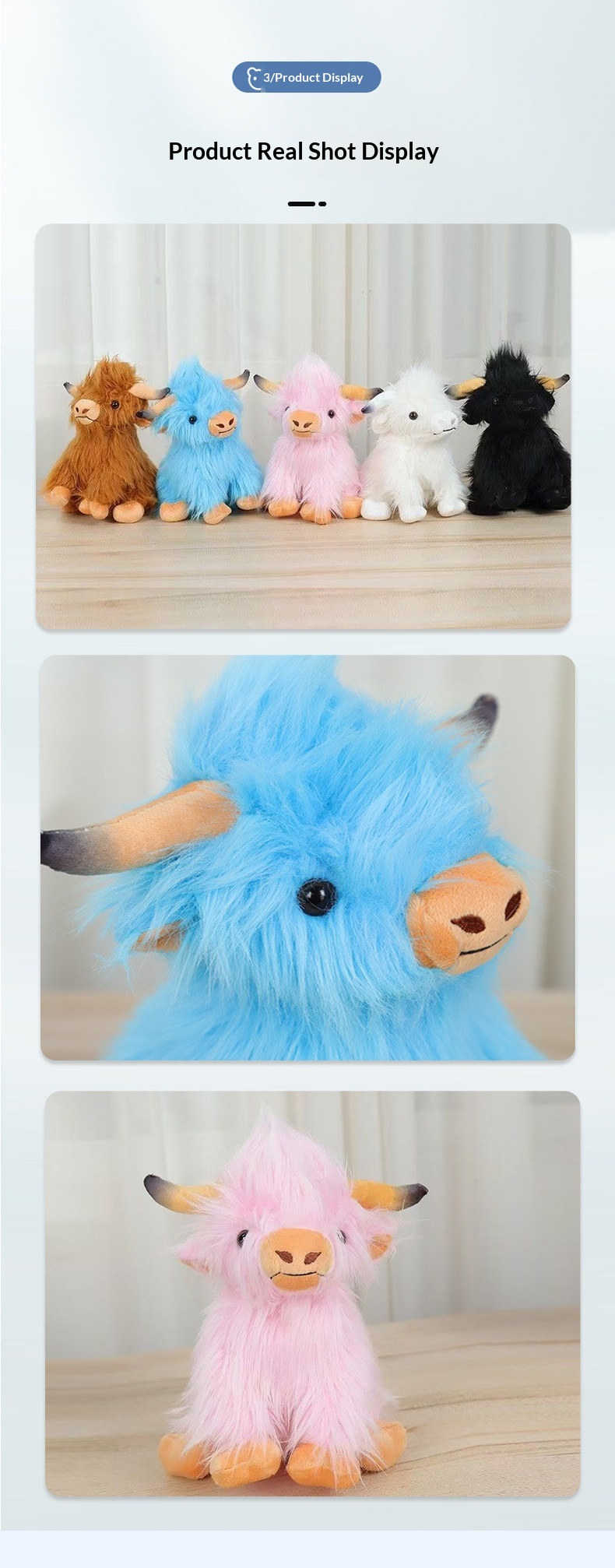 Product information:Category: Plush Toy Plush Type: Short Pile Filling Material: PP Cotton Color: Brown Long-Hair Cow, Black Long-Hair Cow, White Long-Hair Cow, Pink Long-Hair Cow, Blue Long-Hair Cow...