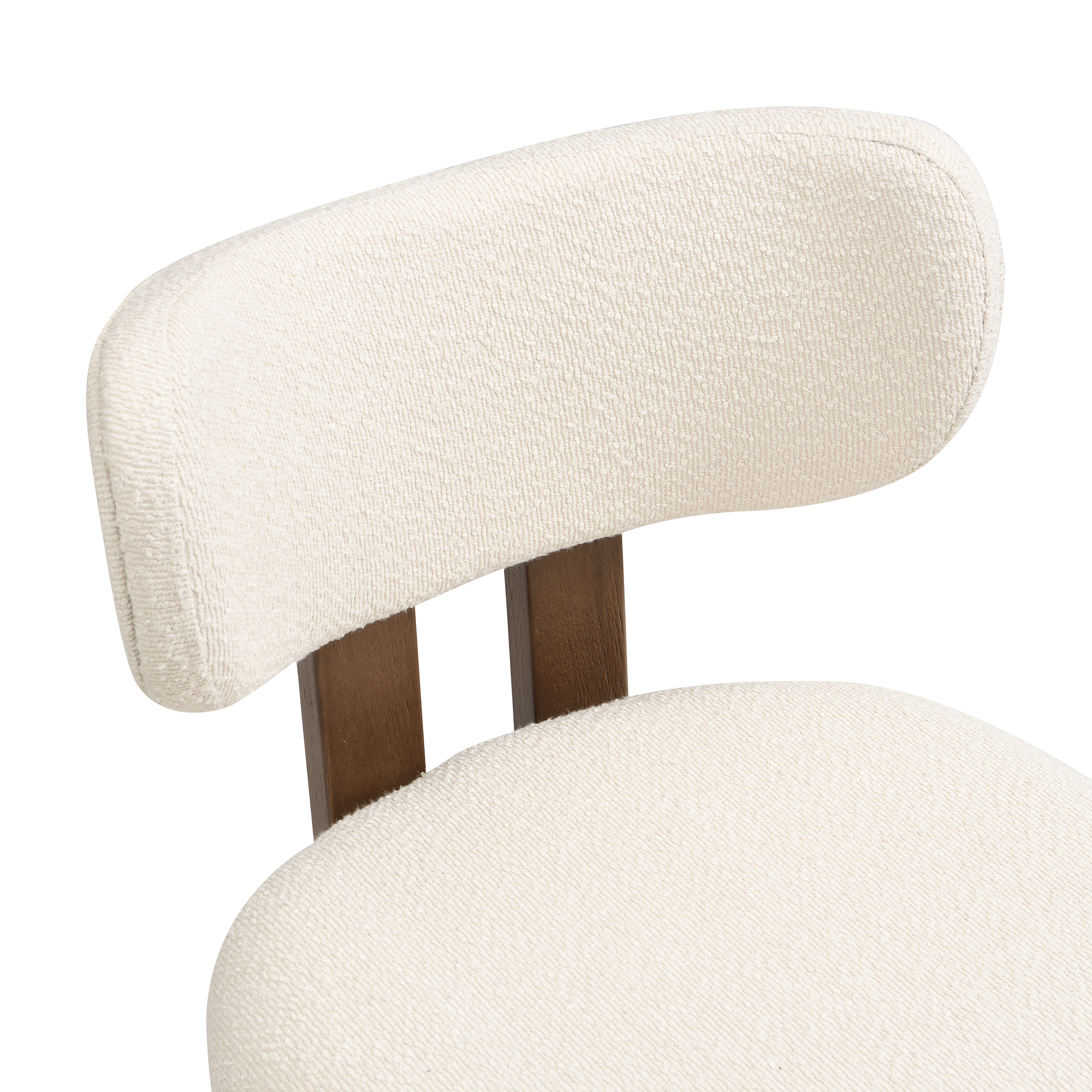 - Beige Boucle Upholstery — Soft, Breathable, and Comfortable, the seat and backrest are upholstered in soft and breathable beige boucle fabric, providing a cozy and comfortable seating experience while adding a luxurious touch to the overall design.