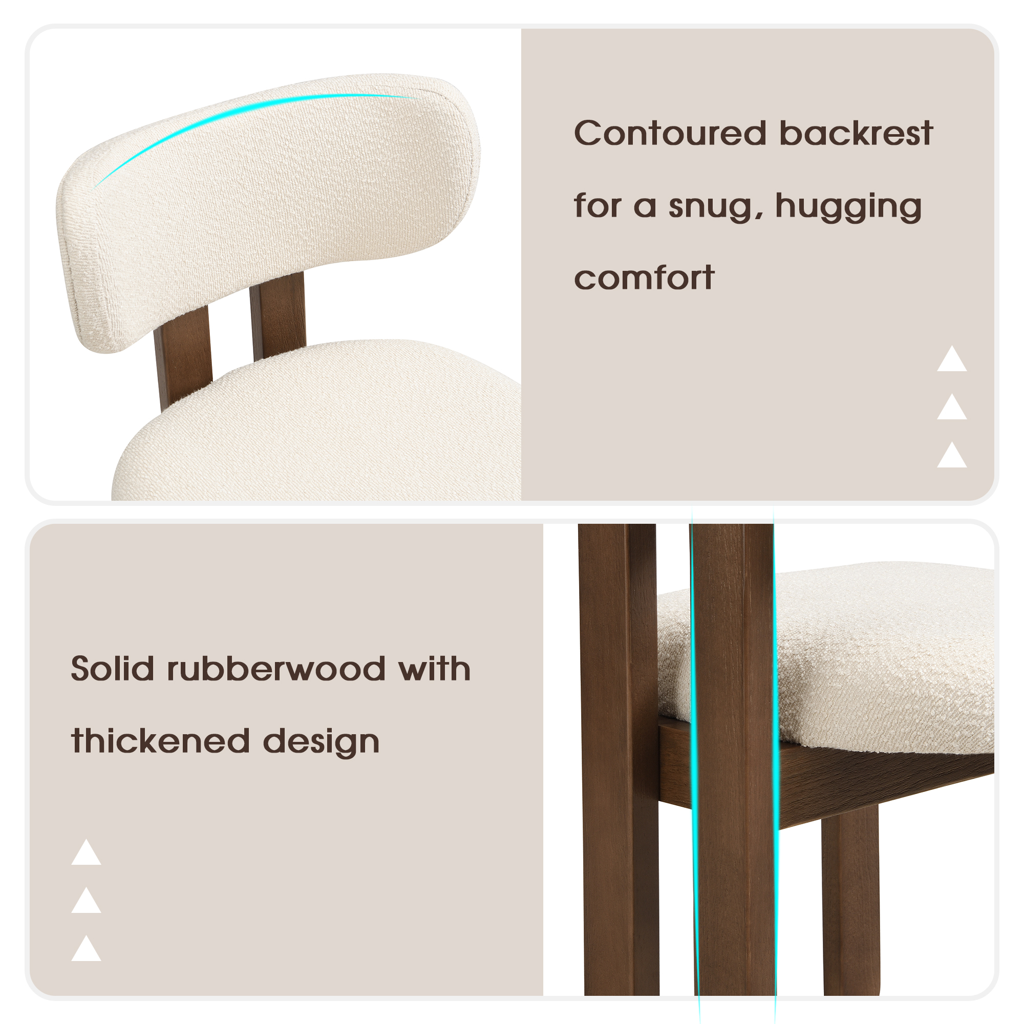 Set Of 2, Solid Wood Chairs, Dining Chairs, Suitable For Homes, Restaurants, Living Rooms, And Cafes, Boucle, Walnut Wood Color