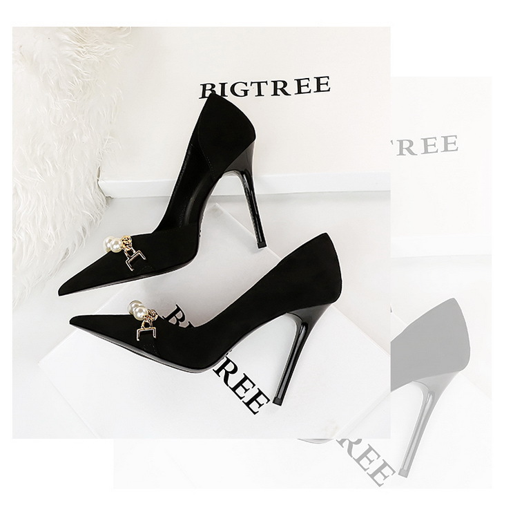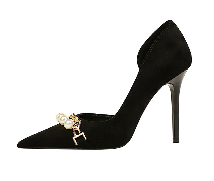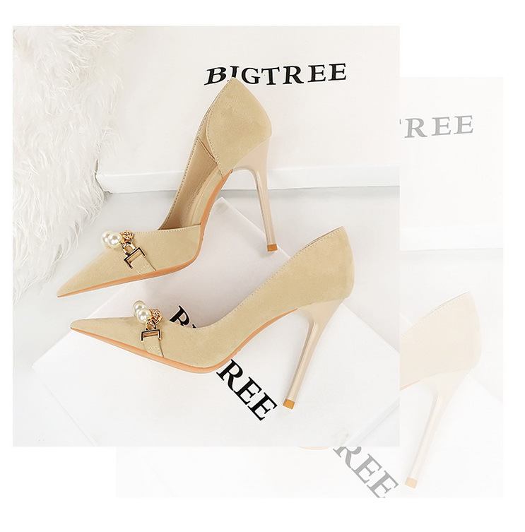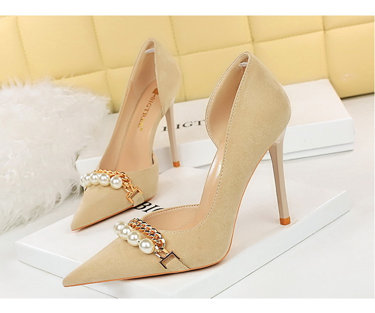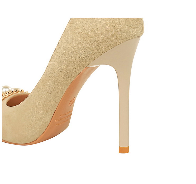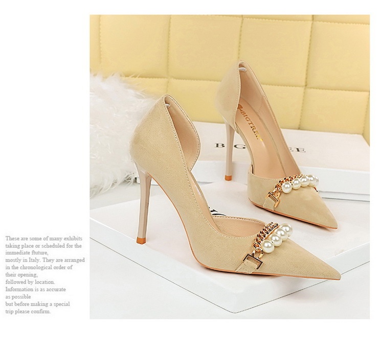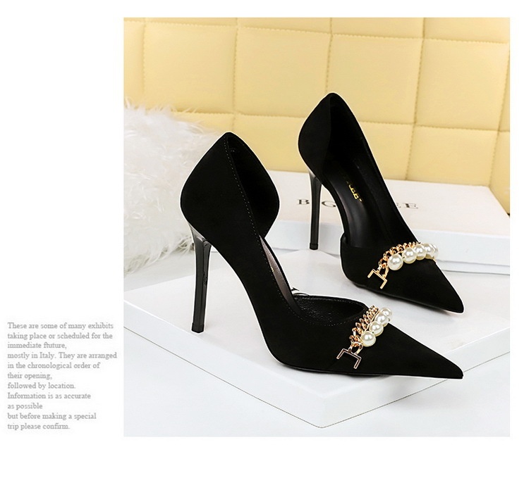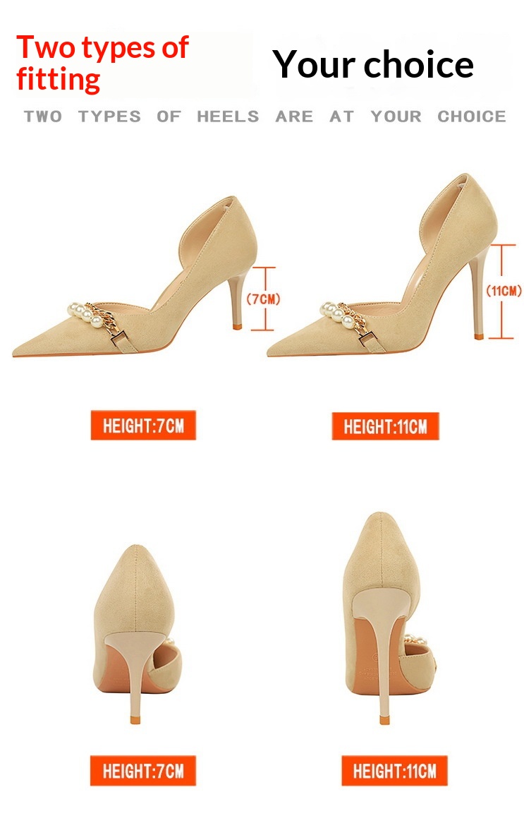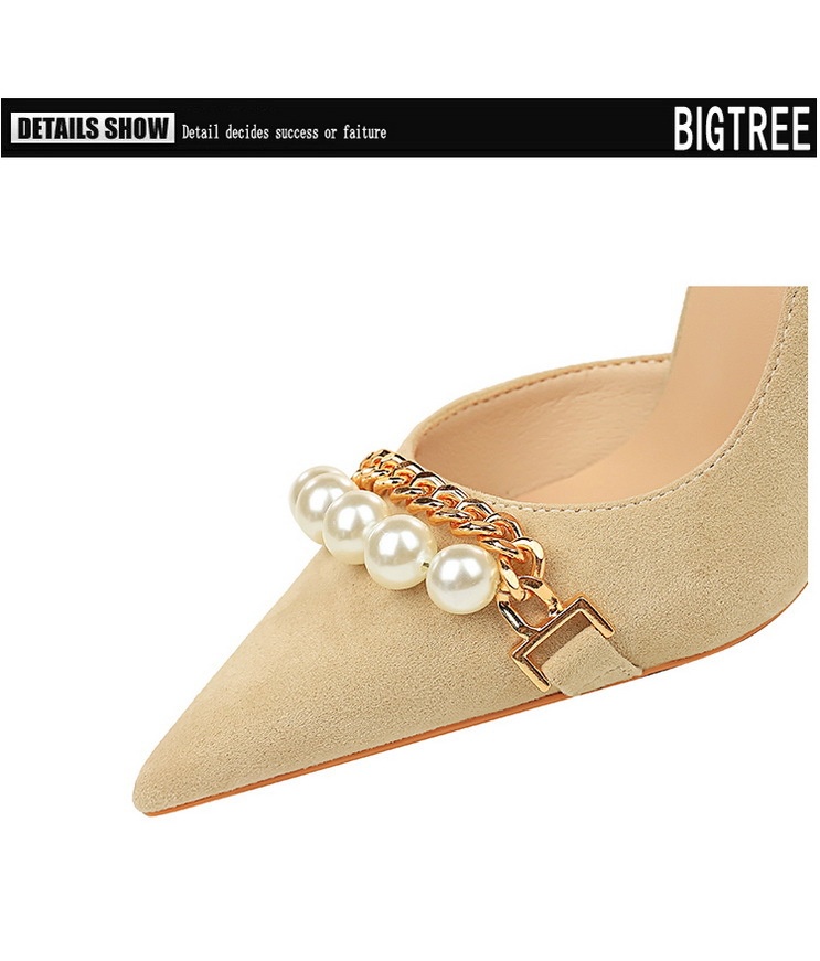 Shallow-toe Pointed-toe Pearl-embellished Metallic Chain Side-cutout Pumps