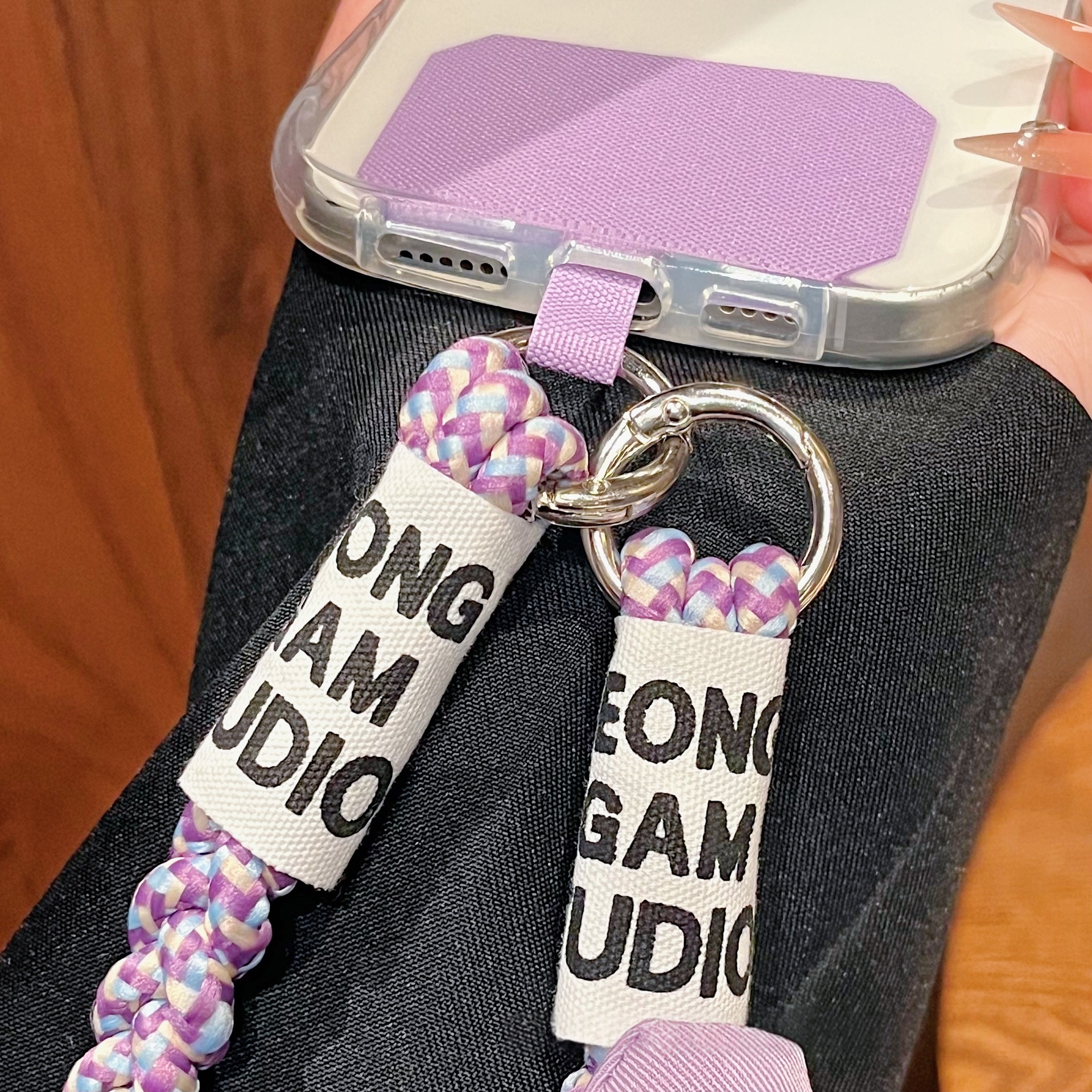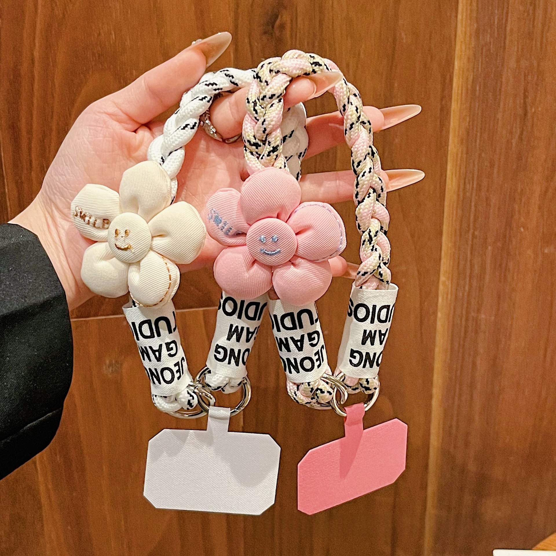 Short Floral-patterned Hemp-cord Phone Case Lanyard With Buttons Anti-loss Phone Strap