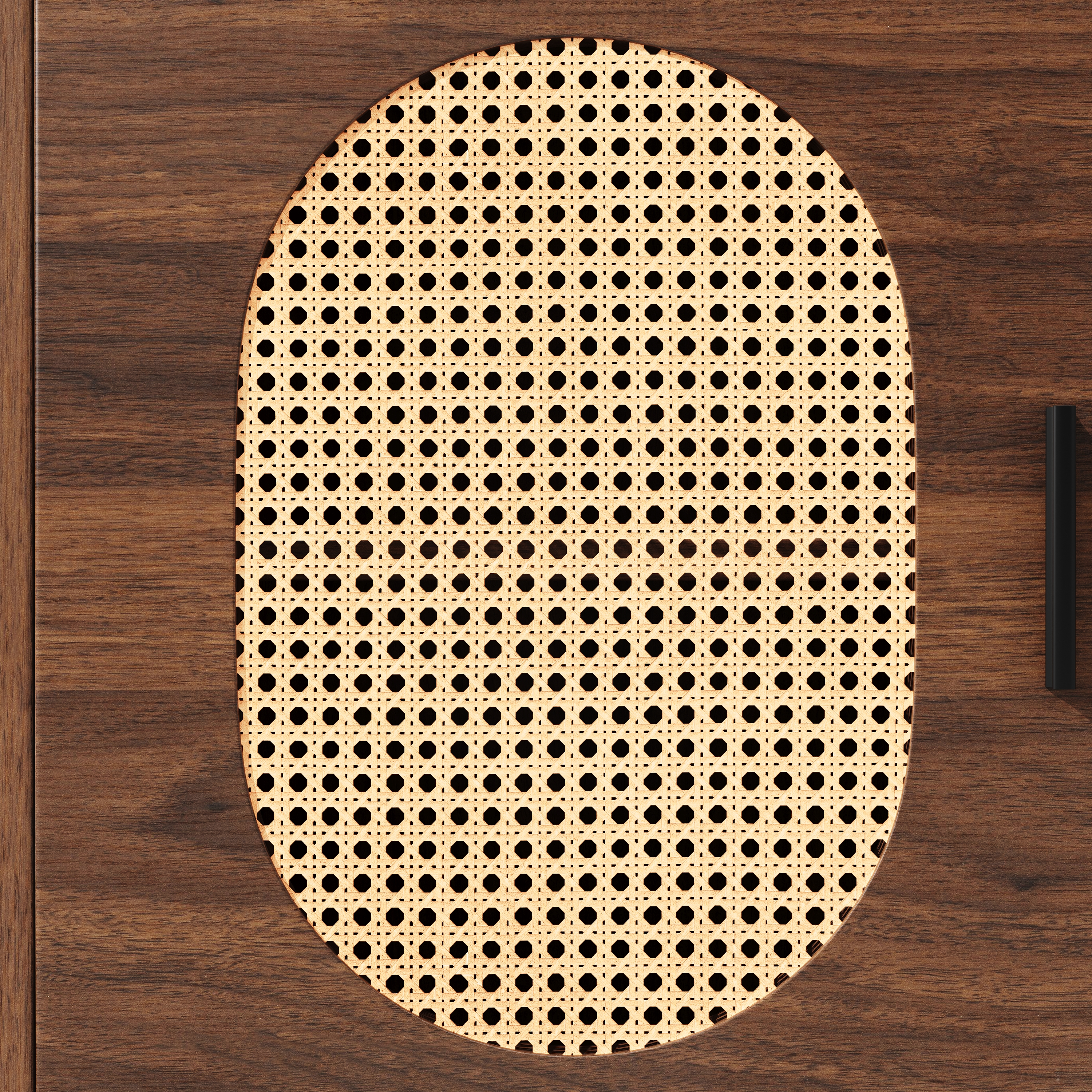 The cabinet is available in brown or black, accented with silver handles. The design combines a retro-minimalist look with interesting accents and integrates seamlessly into any area of your home.