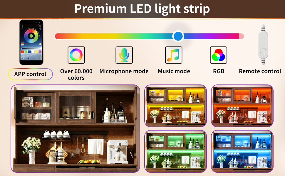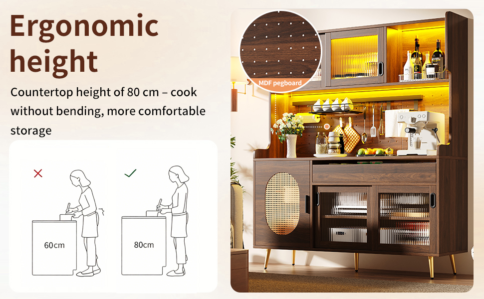 SpecificationProduct InformationProduct Type :Combo ItemProduct Name:Sideboard / Storage Cabinet / Kitchen Cabinet / Buffet, 145x39x171cm, Country Style, 5 Doors, with LED Light Strip & Pegboard,...