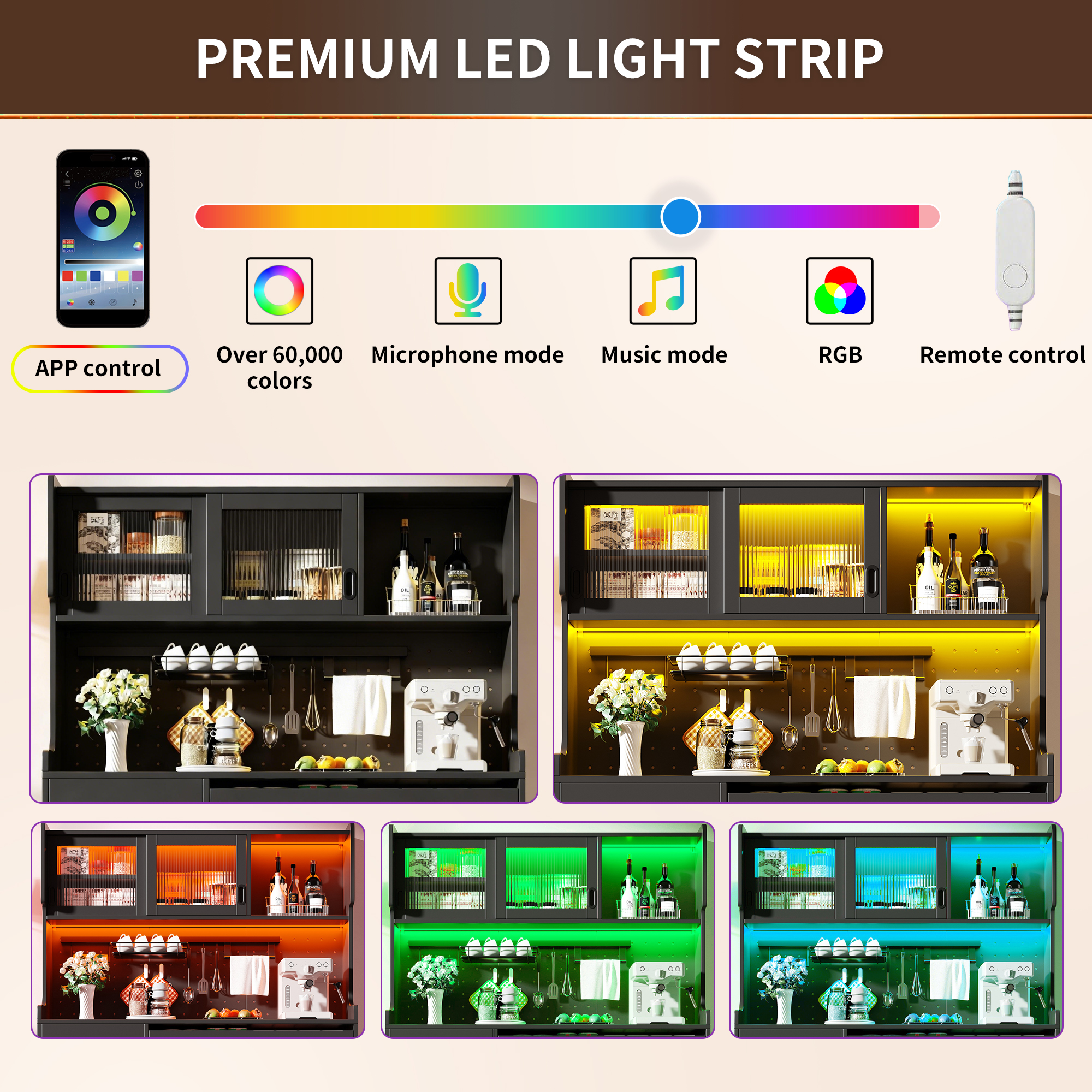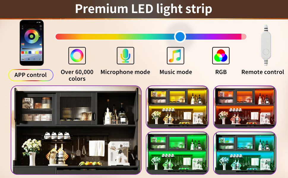 SpecificationProduct InformationProduct Type :Combo ItemProduct Name:Sideboard / Storage Cabinet / Kitchen Cabinet / Buffet, 145x39x171cm, Country Style, 5 Doors, with LED Light Strip & Pegboard,...