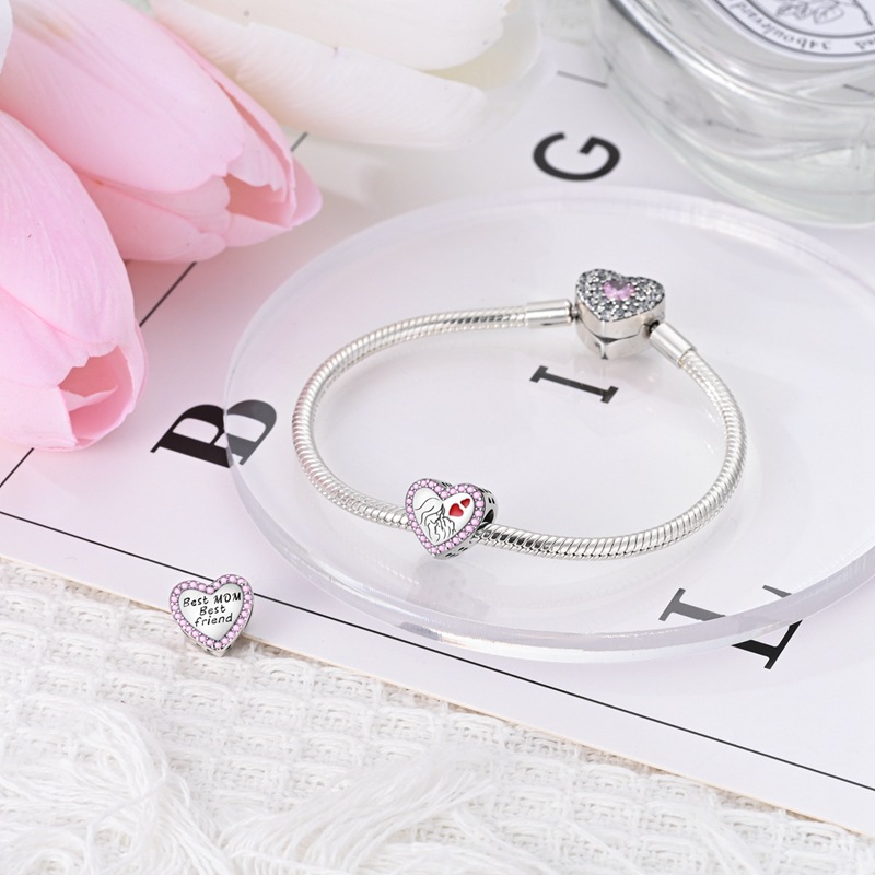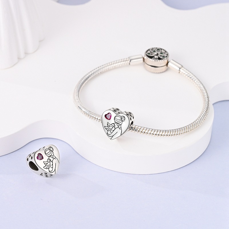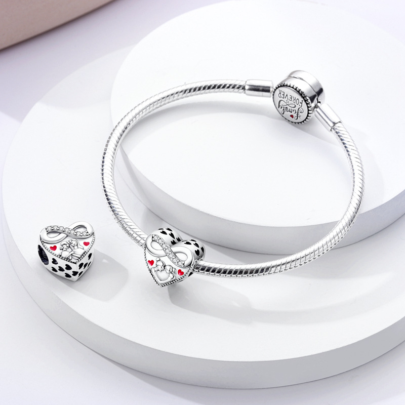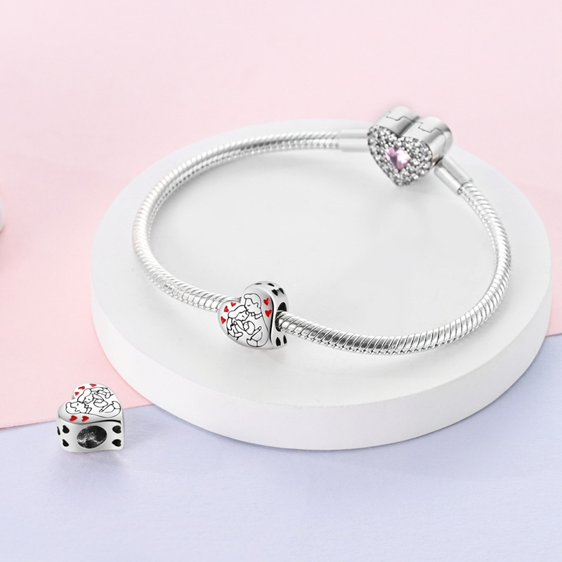 Silver-plated Copper Love Beads For A Happy Family DIY Loose Heart-shaped Beads For Jewelry Making