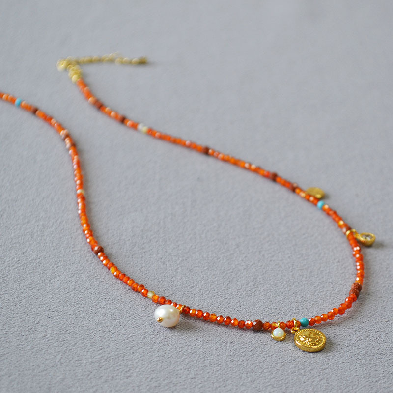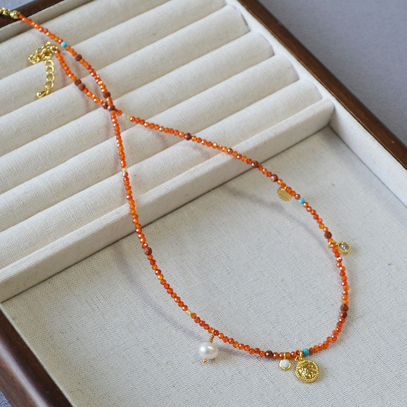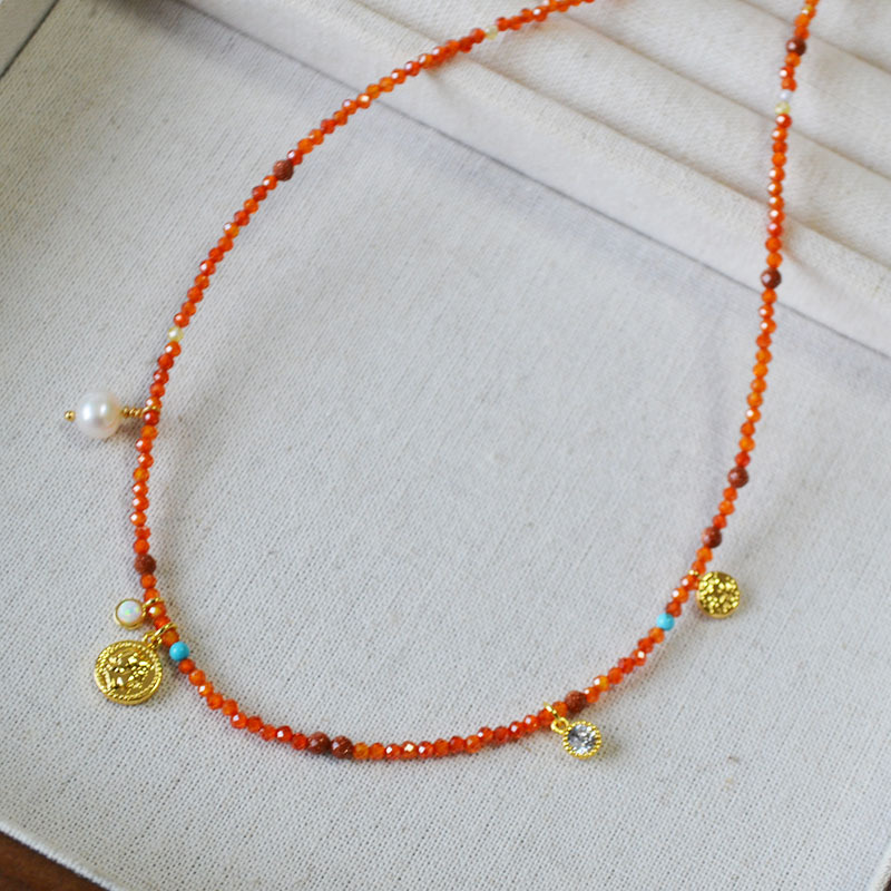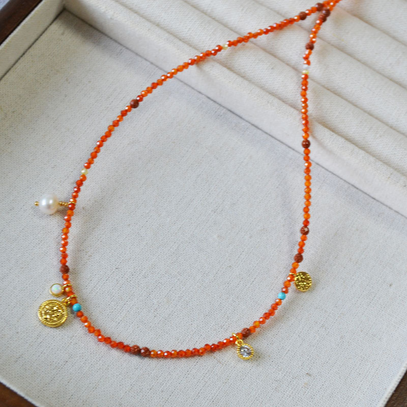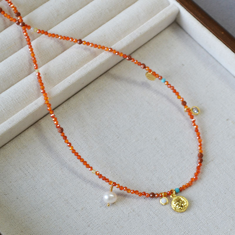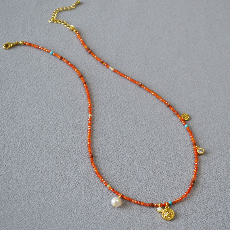 Product information:Processing Method: Handmade Color: Orange-Red Necklace Target Audience: Women Pendant Material: Mixed Gemstone Inlay Chain Style: Handmade Chain Material: Beaded/Beads Shape: Geome...