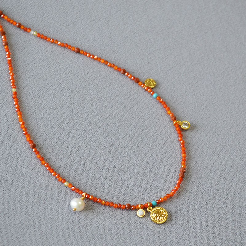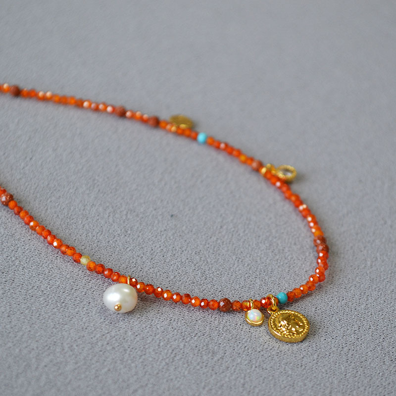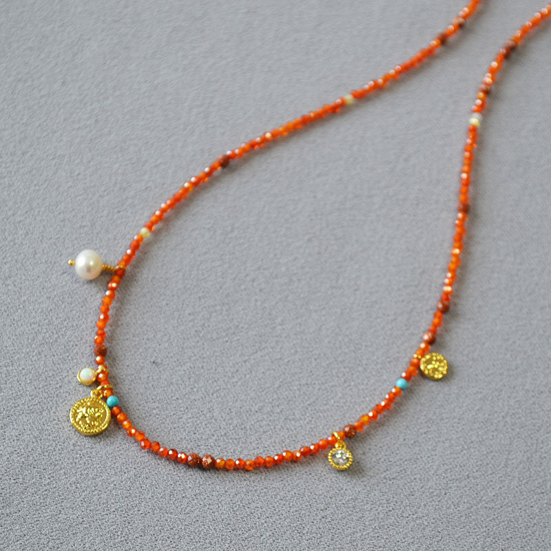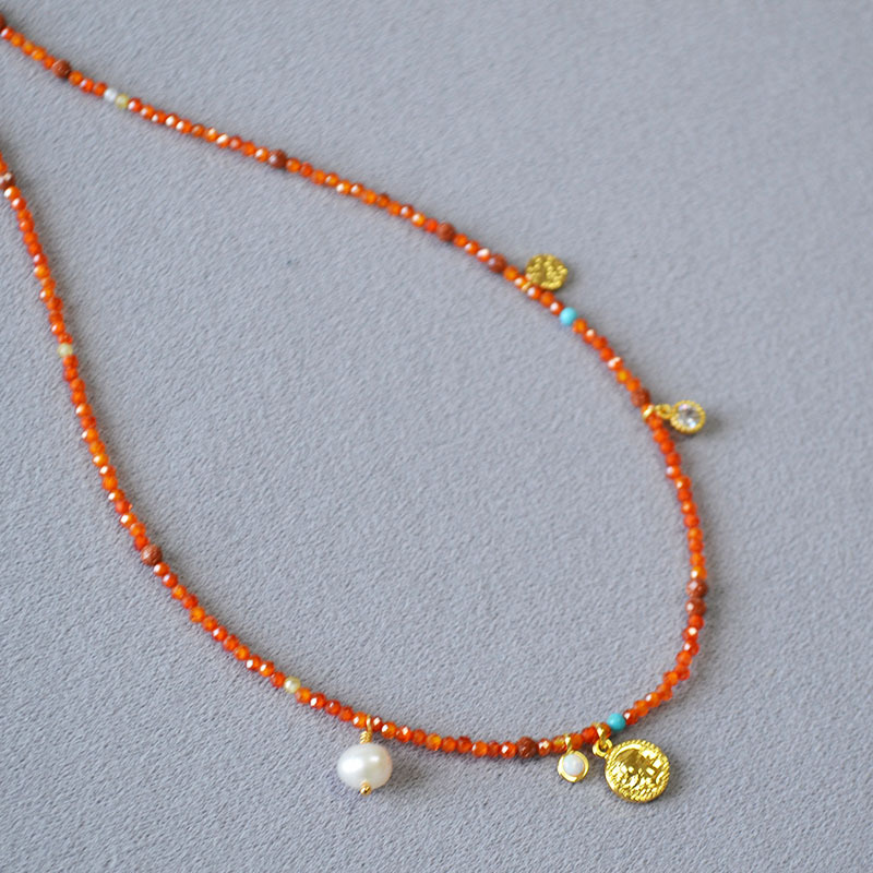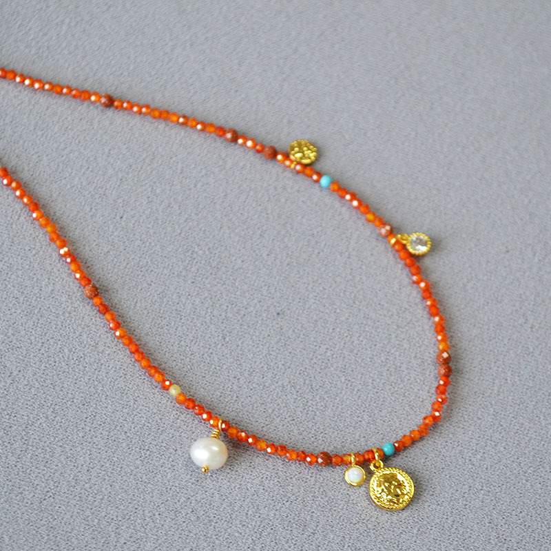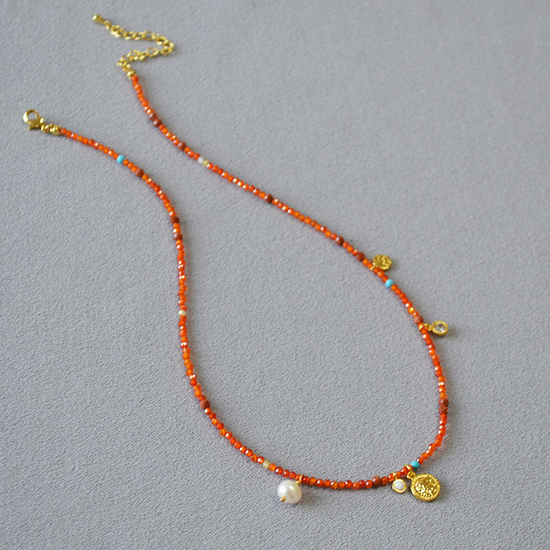 Product information:Processing Method: Handmade Color: Orange-Red Necklace Target Audience: Women Pendant Material: Mixed Gemstone Inlay Chain Style: Handmade Chain Material: Beaded/Beads Shape: Geome...