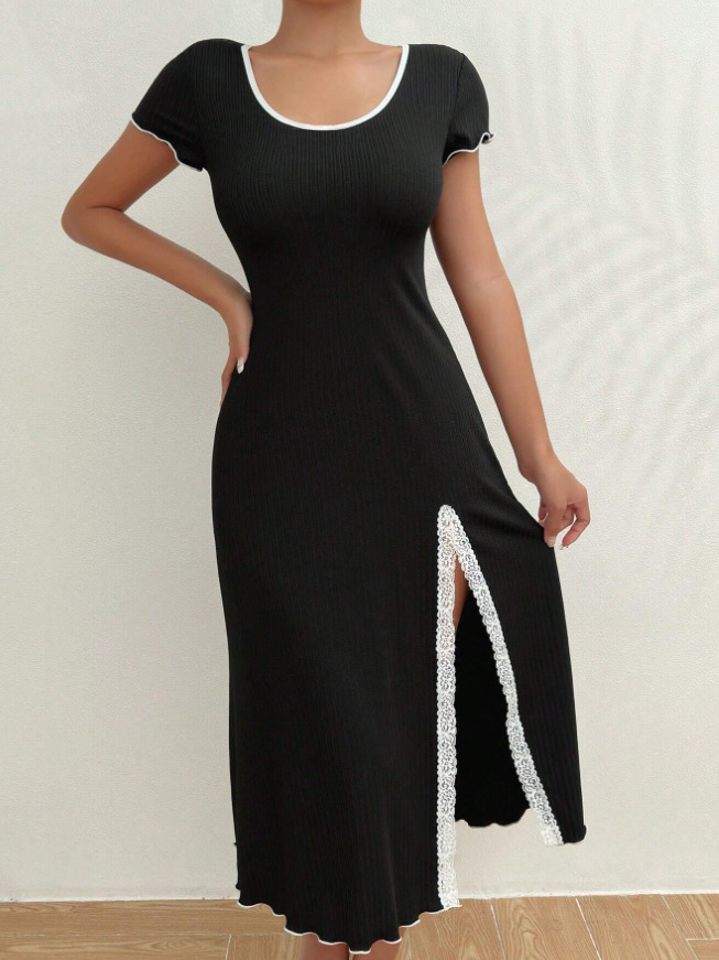 Simple Round-neck Mini Black Dress In Short And Long Styles