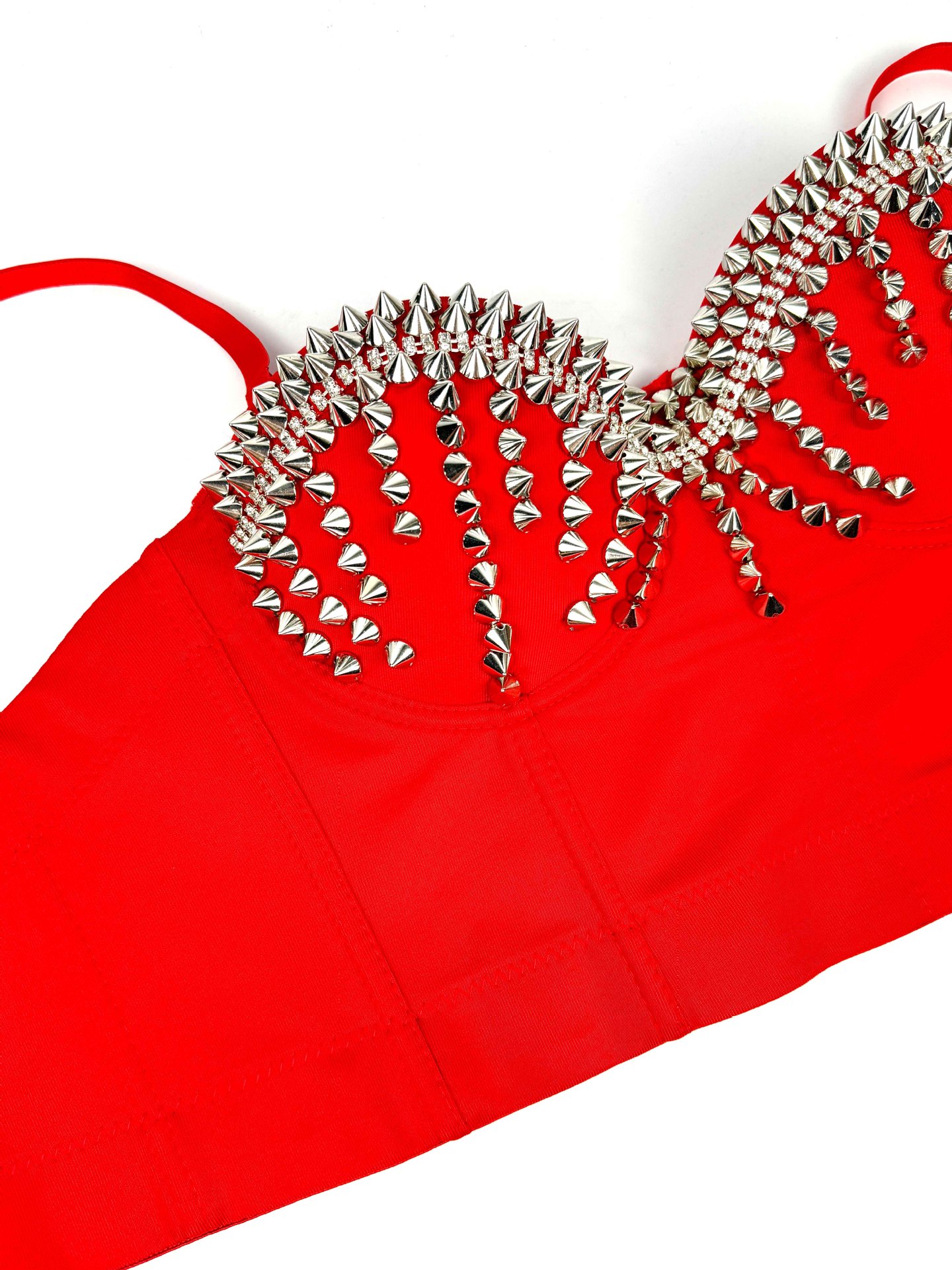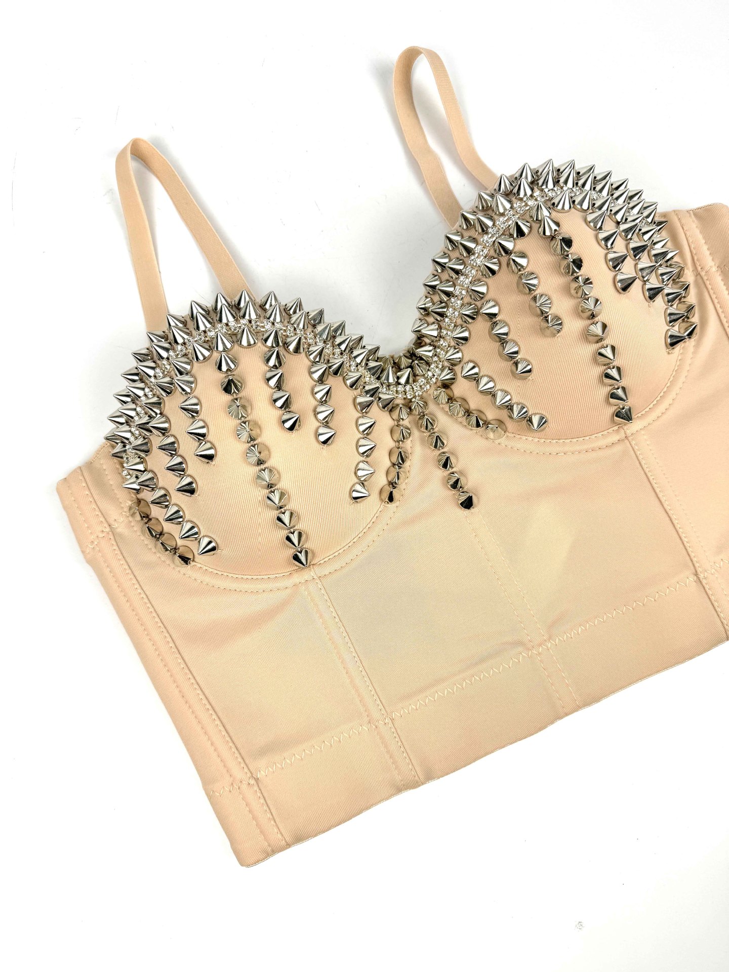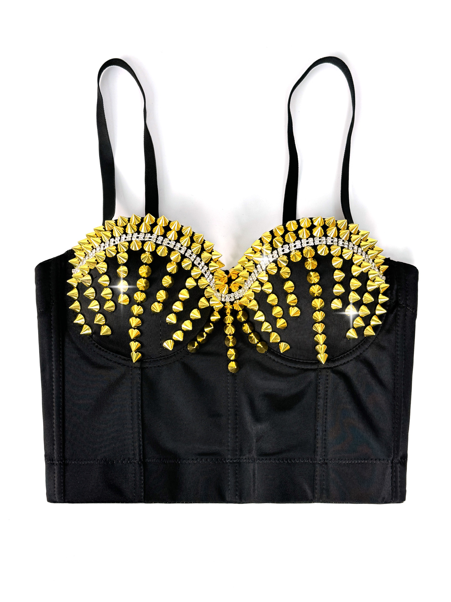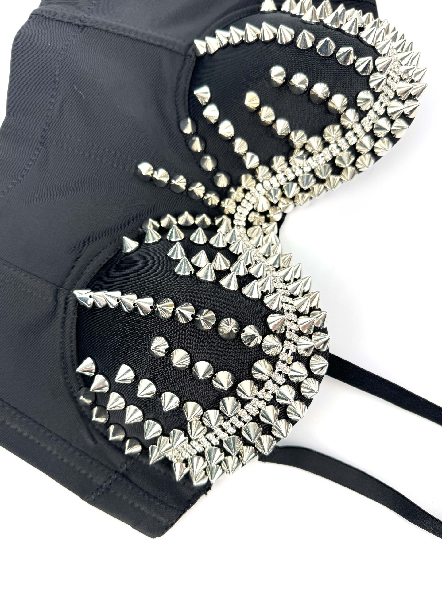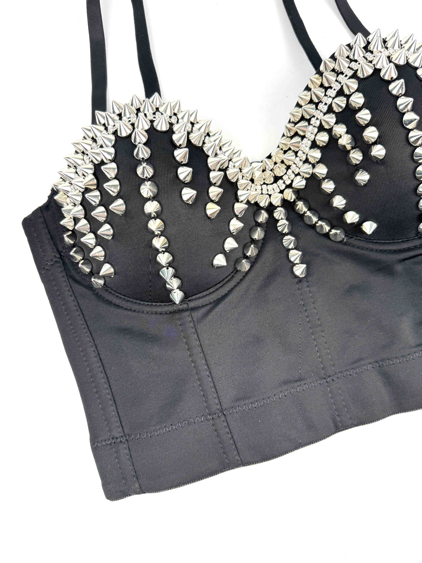 Sleek Edgy Outerwear Top With Exposed Midriff And Decorative Rivets