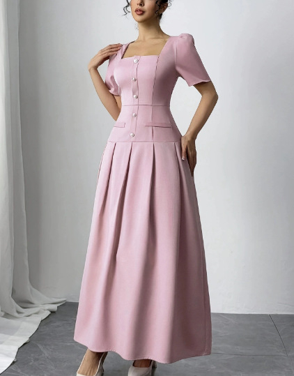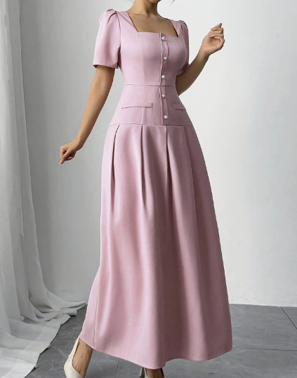 Slimming Square Neckline Dress With Puff Sleeves