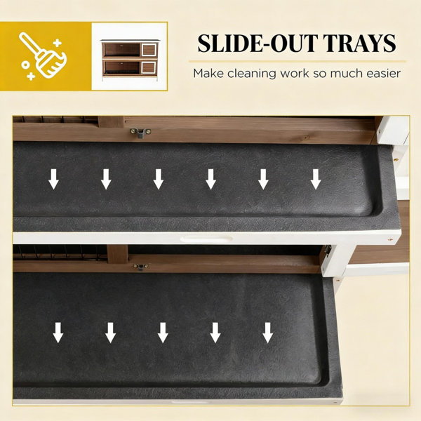 - Bunny hutch includes removable floor trays for easy cleaning, feeding, and more