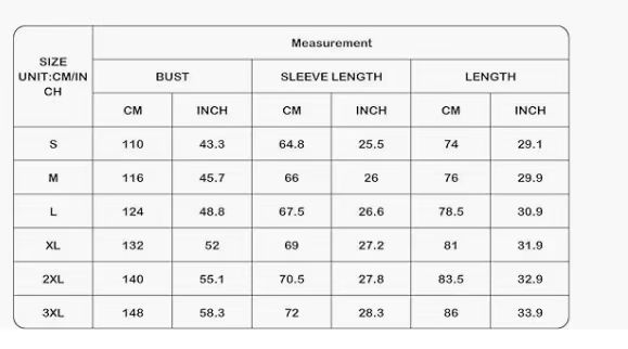 Sizes: S, M, L, XL, XXL, XXXL