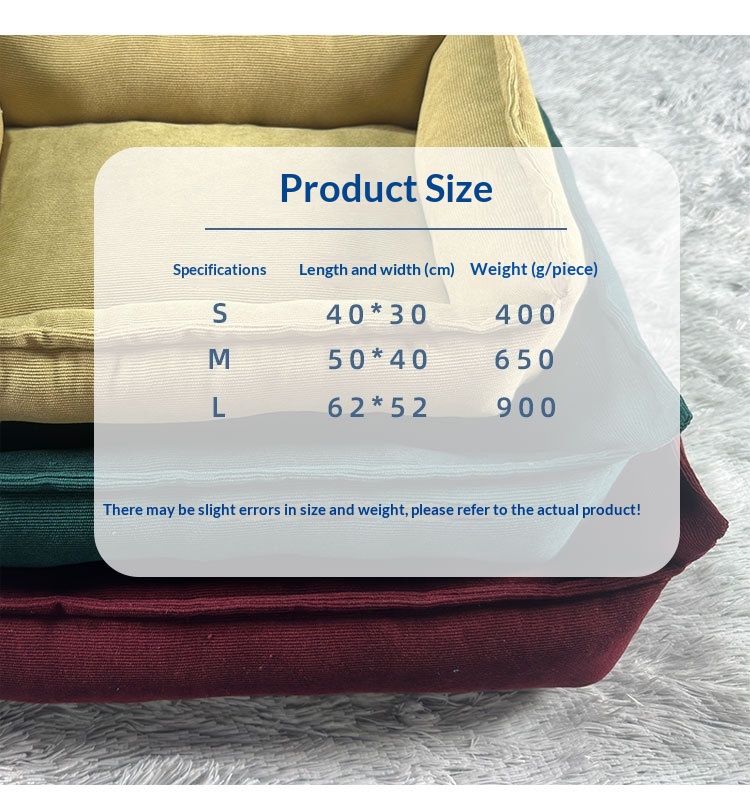 Product information:Colors: Turmeric, Dark Green, Wine Red Sizes: S (30*40), M (40*50), L (52*62) Material: CorduroyPacking list: Pet nest *1Product Image: