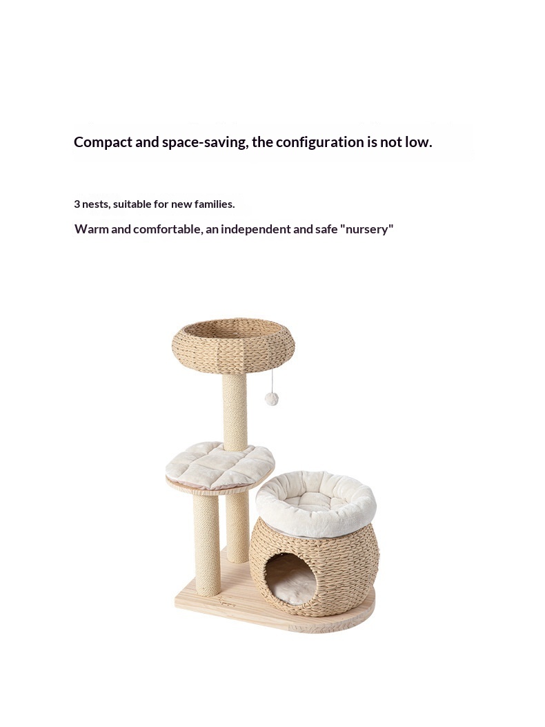 Solid Wood Cat Tree With Integrated Scratching Post And Cozy Nest