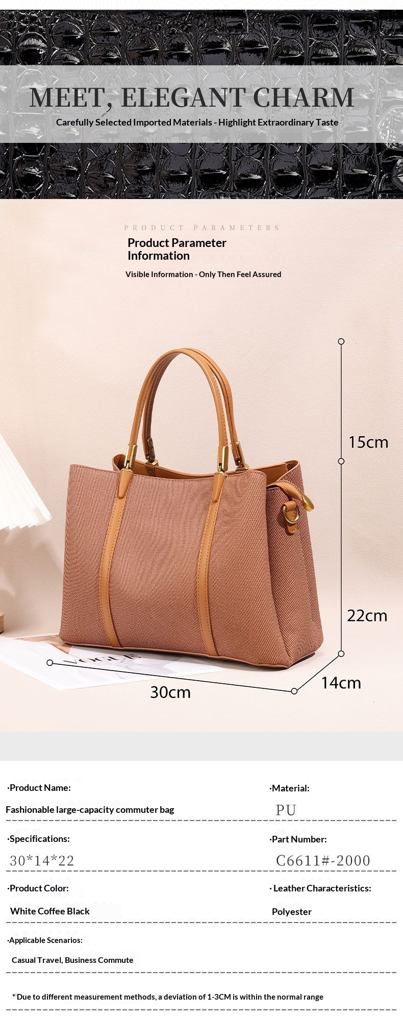 Product information:Lining material: PUApplicable scene: Everyday wearColors: Black, apricot, brownOuter pocket type: Patch pocketHardness: Medium to firmMaterial: PU leatherBag shape: Shopping bag st...