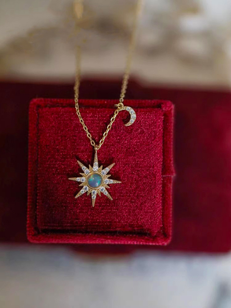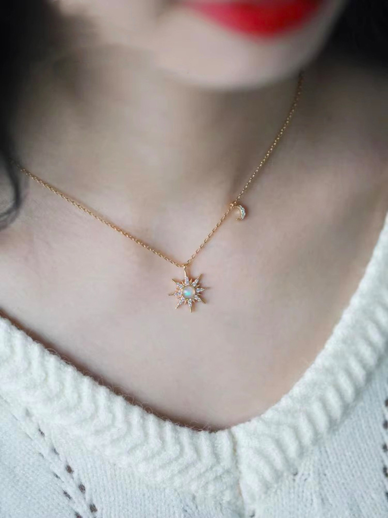 Sparkling Eight-Point Star Zircon Necklace For Women Elegant Light Luxury Style