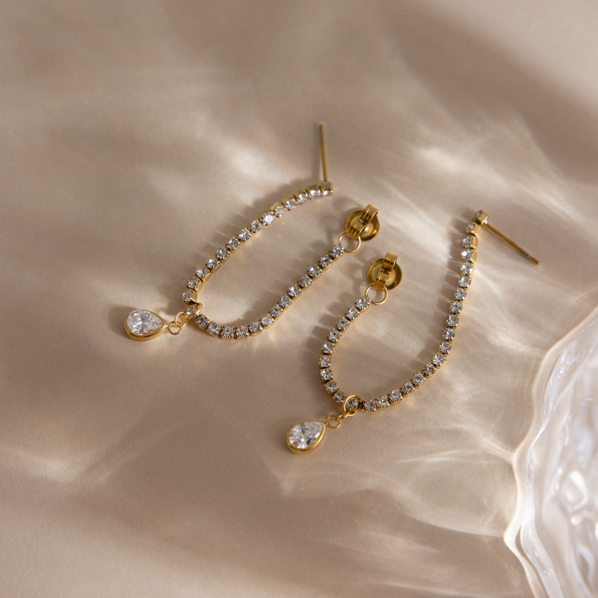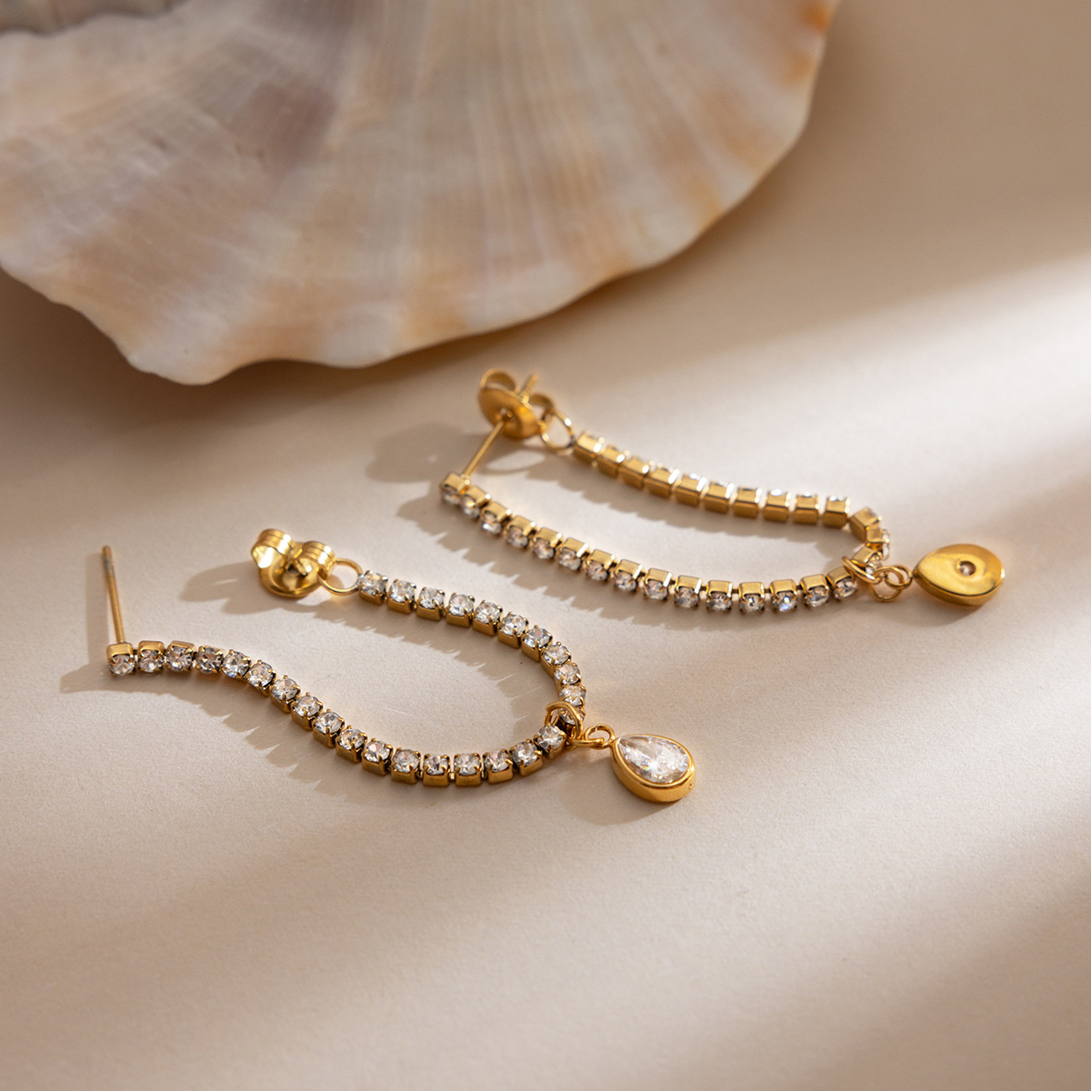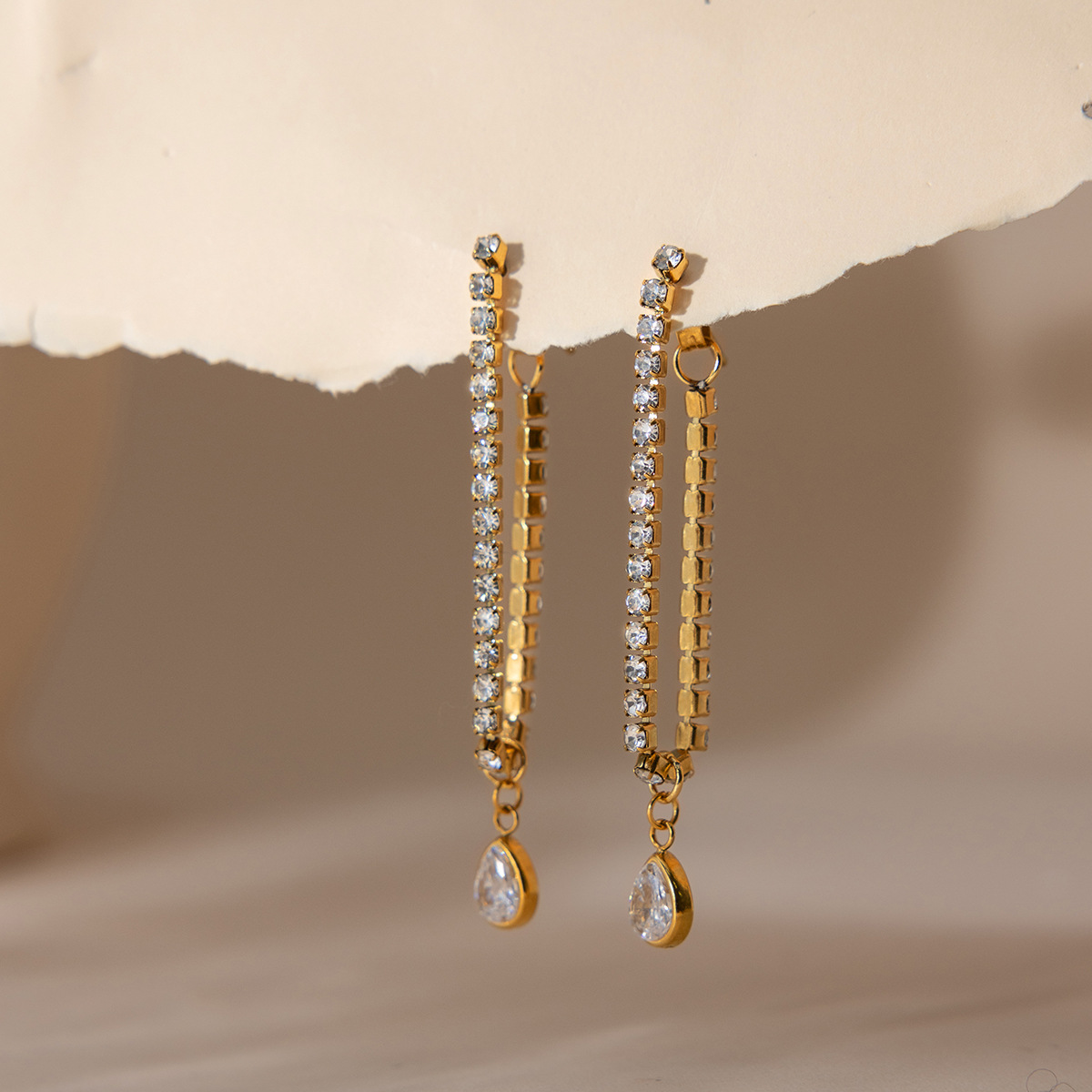 Stainless Steel 18K White Waterdrop-Shaped Zircon Stud Earrings With Tassels
