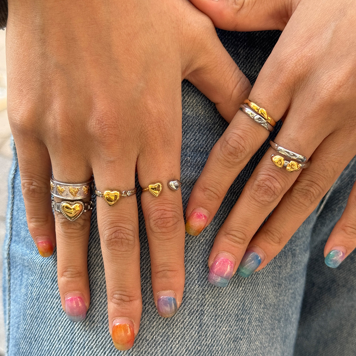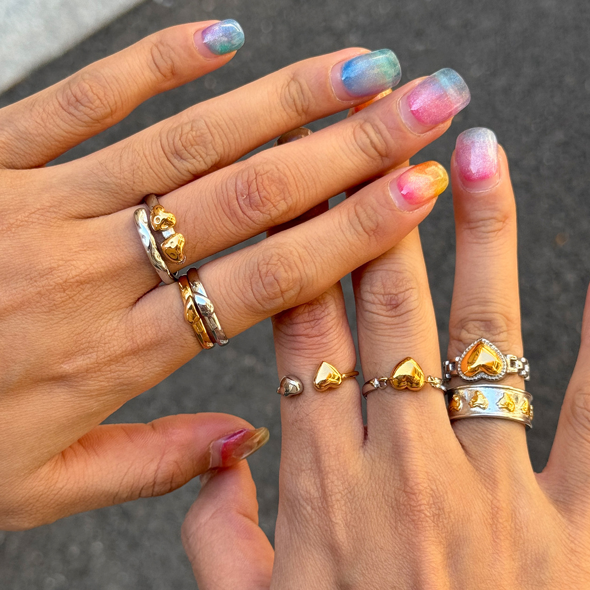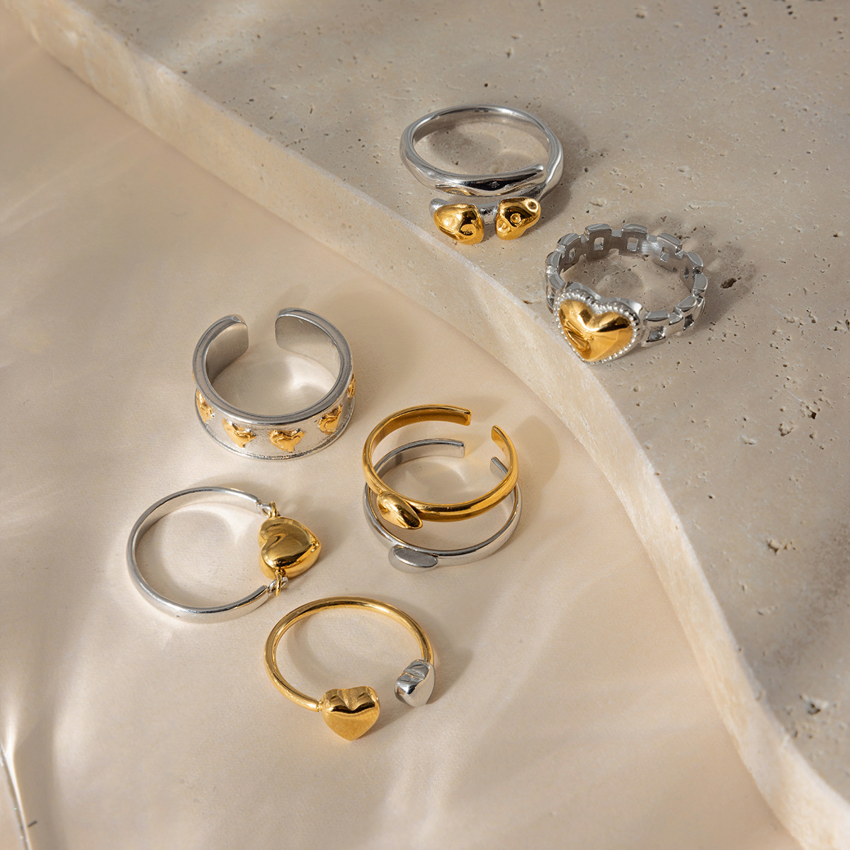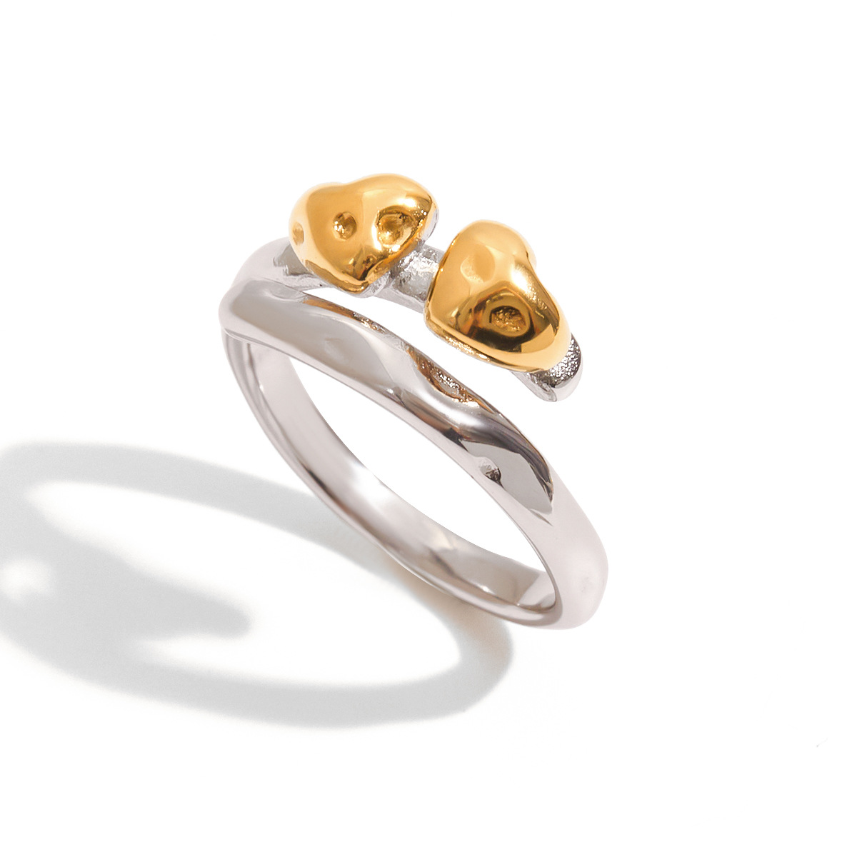 Stainless Steel Heart-Shaped Gold And Silver Two-Tone Ring A Romantic Color-Blocked Gift For Him Or Her