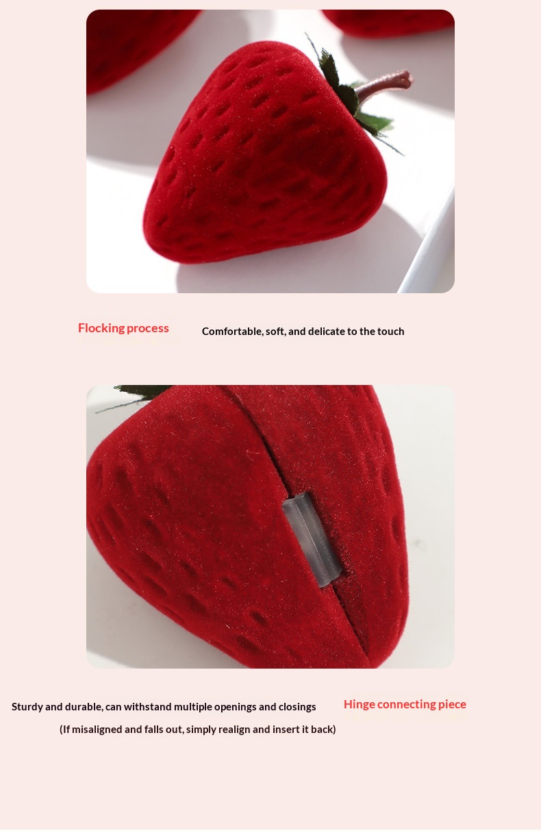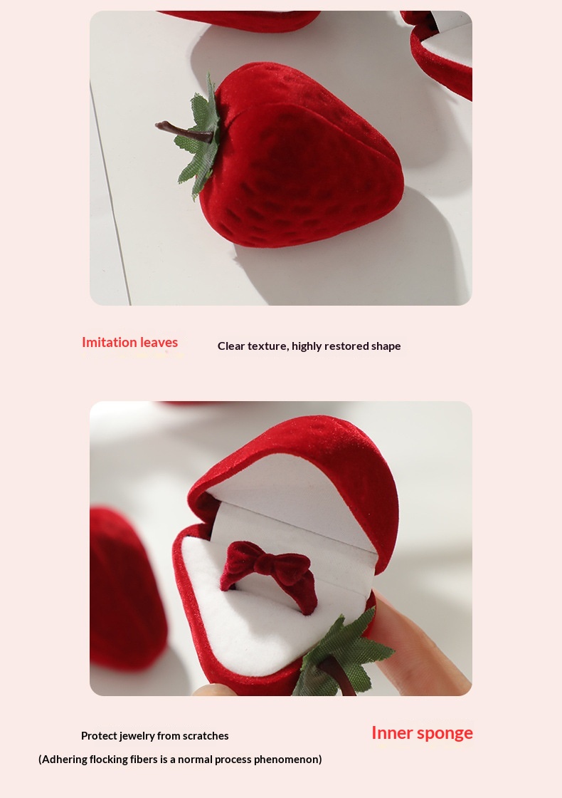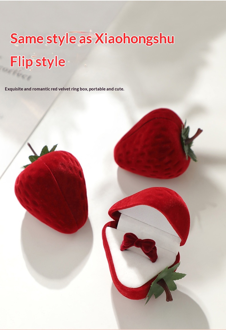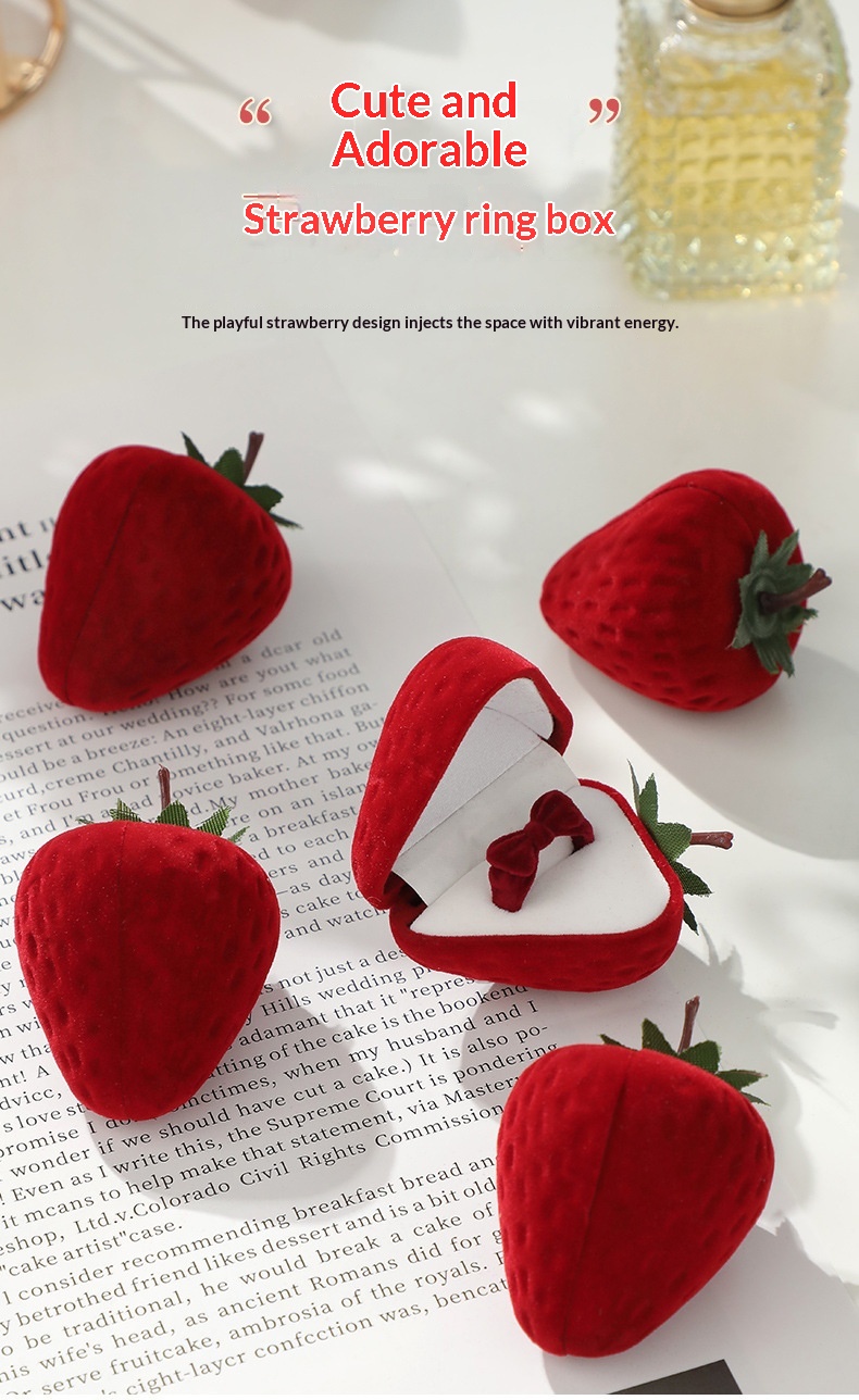 Color: Red — Adorable strawberry ring box, featuring a red strawberry design with a ring