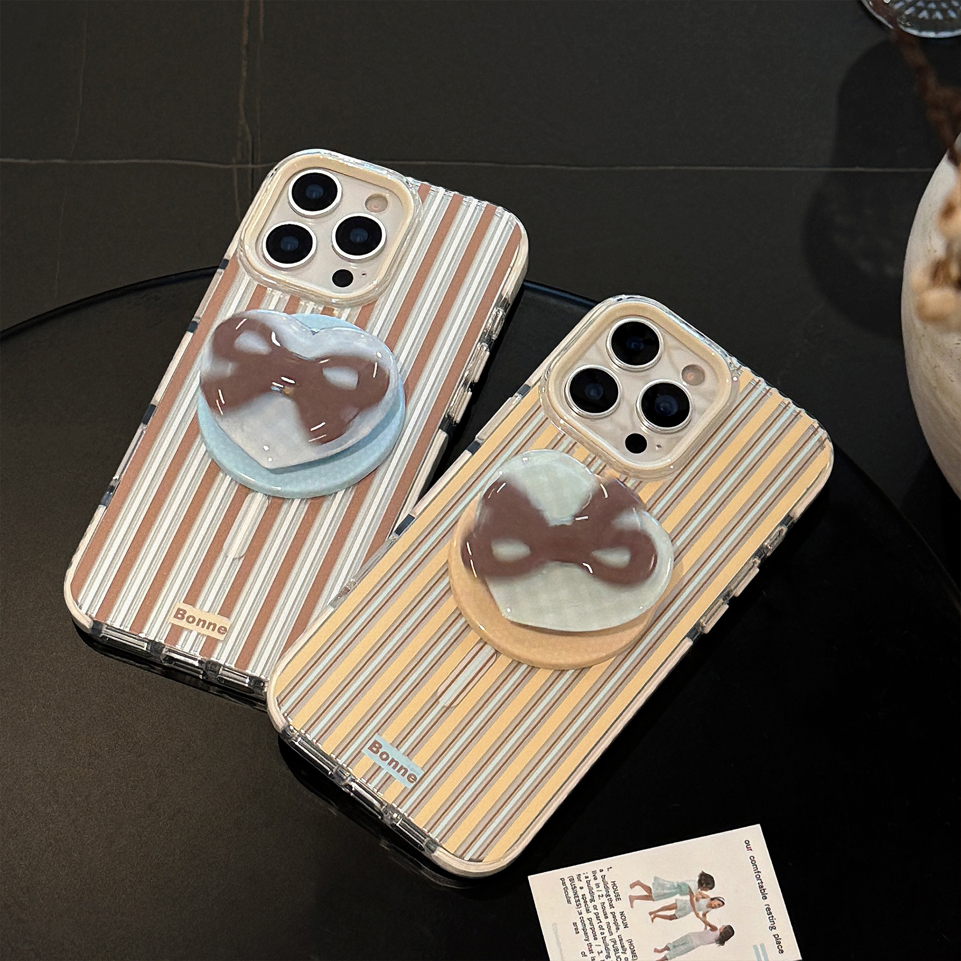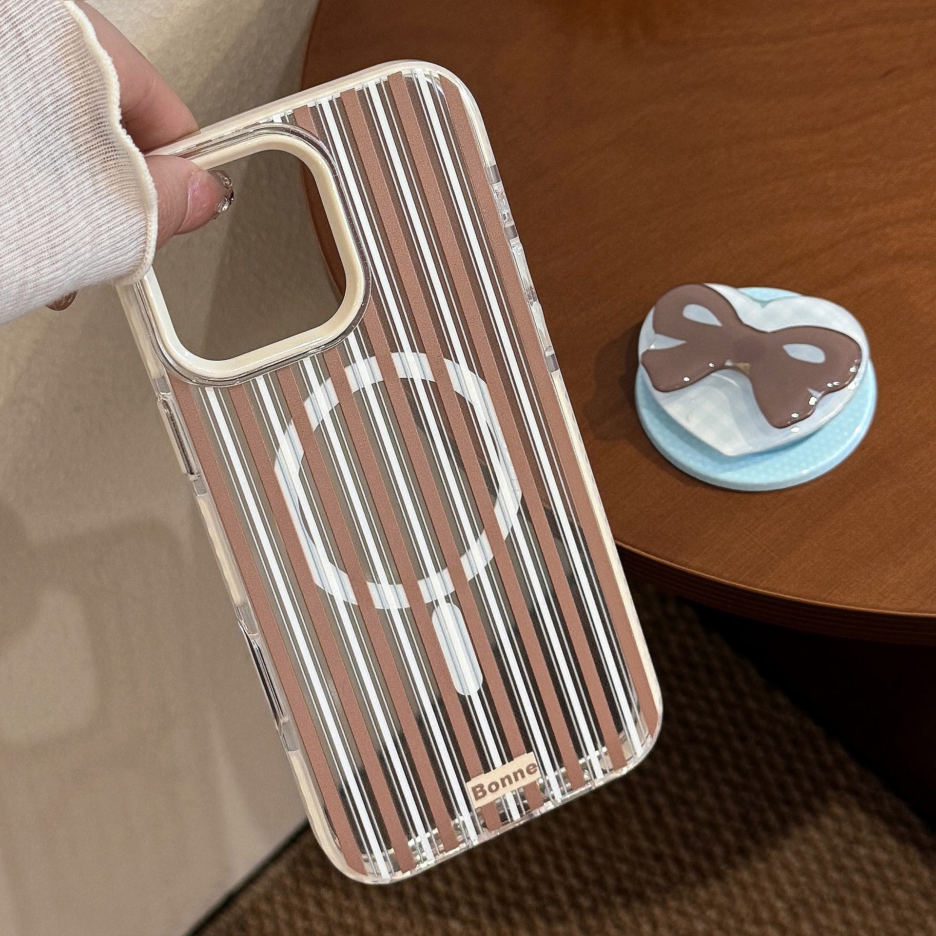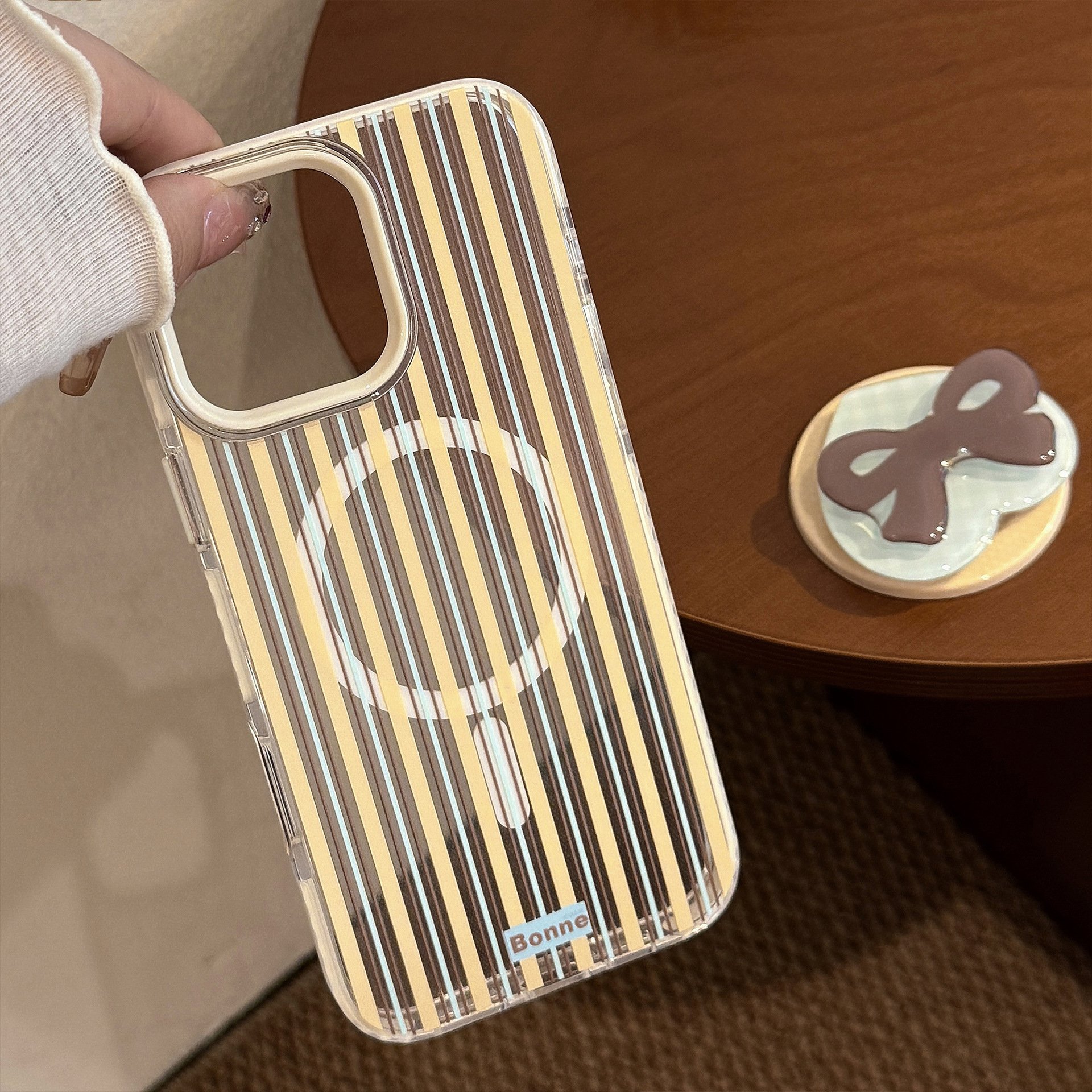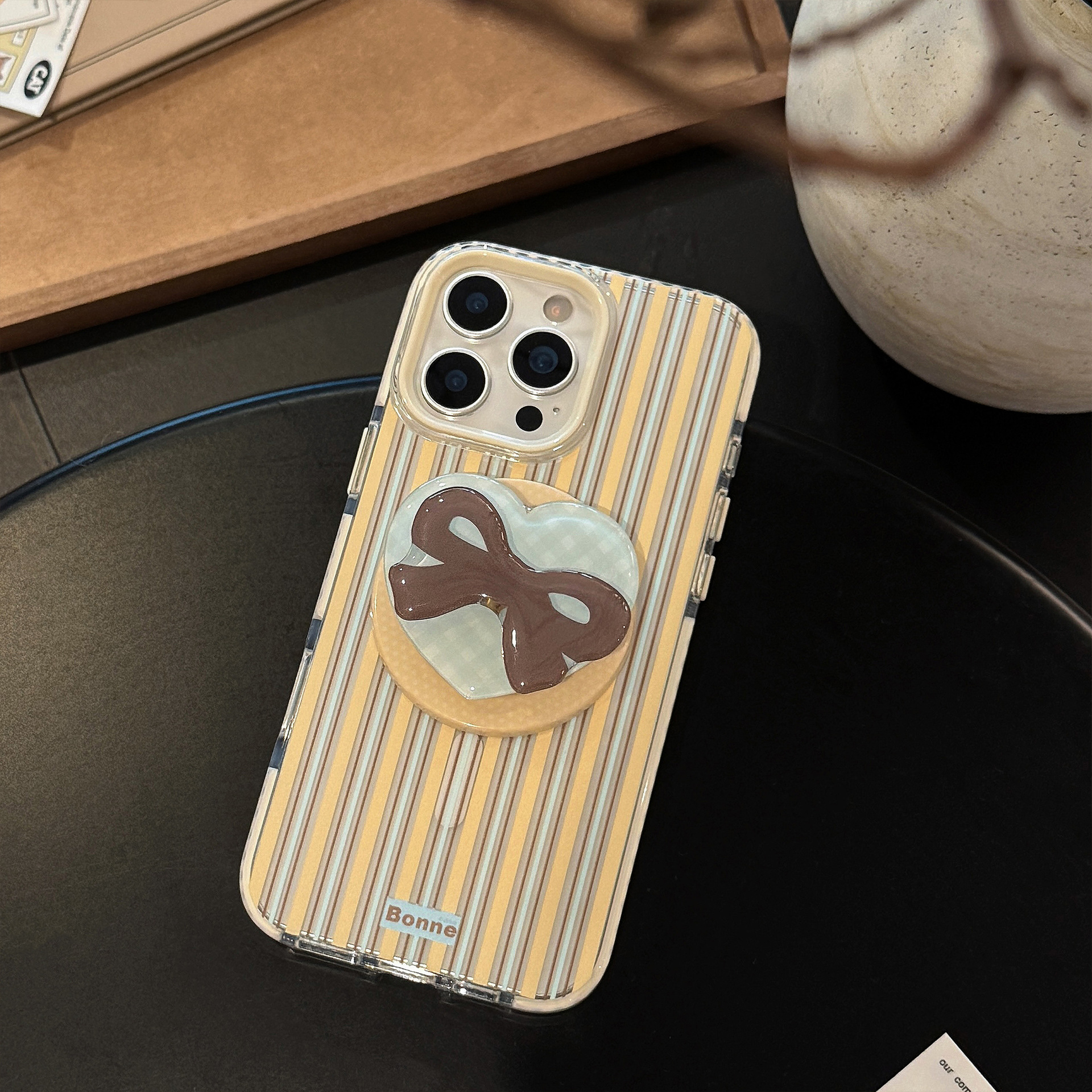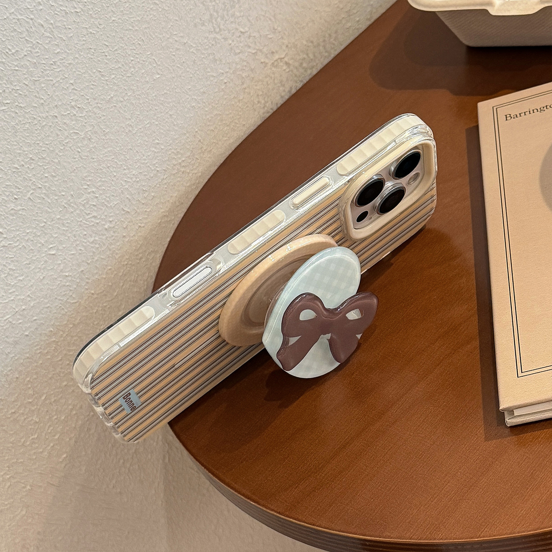 Striped Magnetic Transparent Phone Case With Rotating Bowknot Stand
