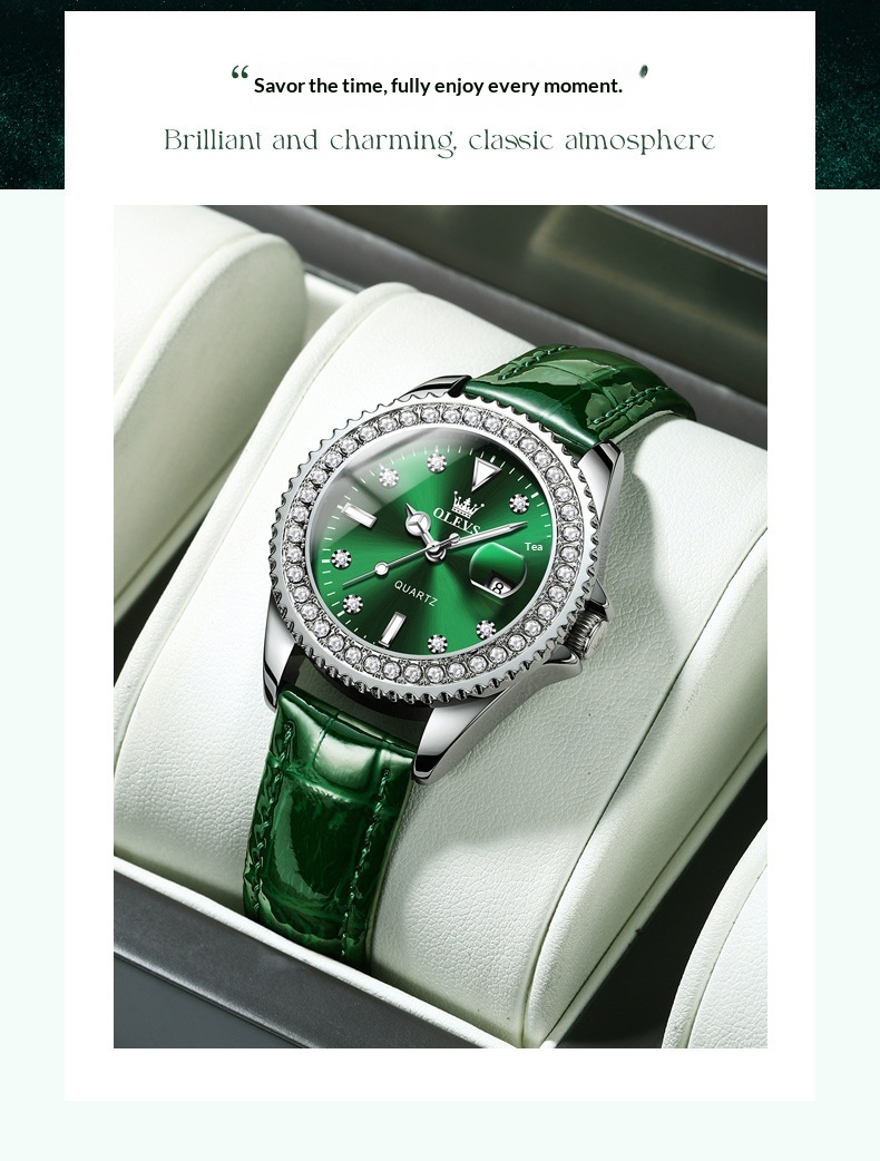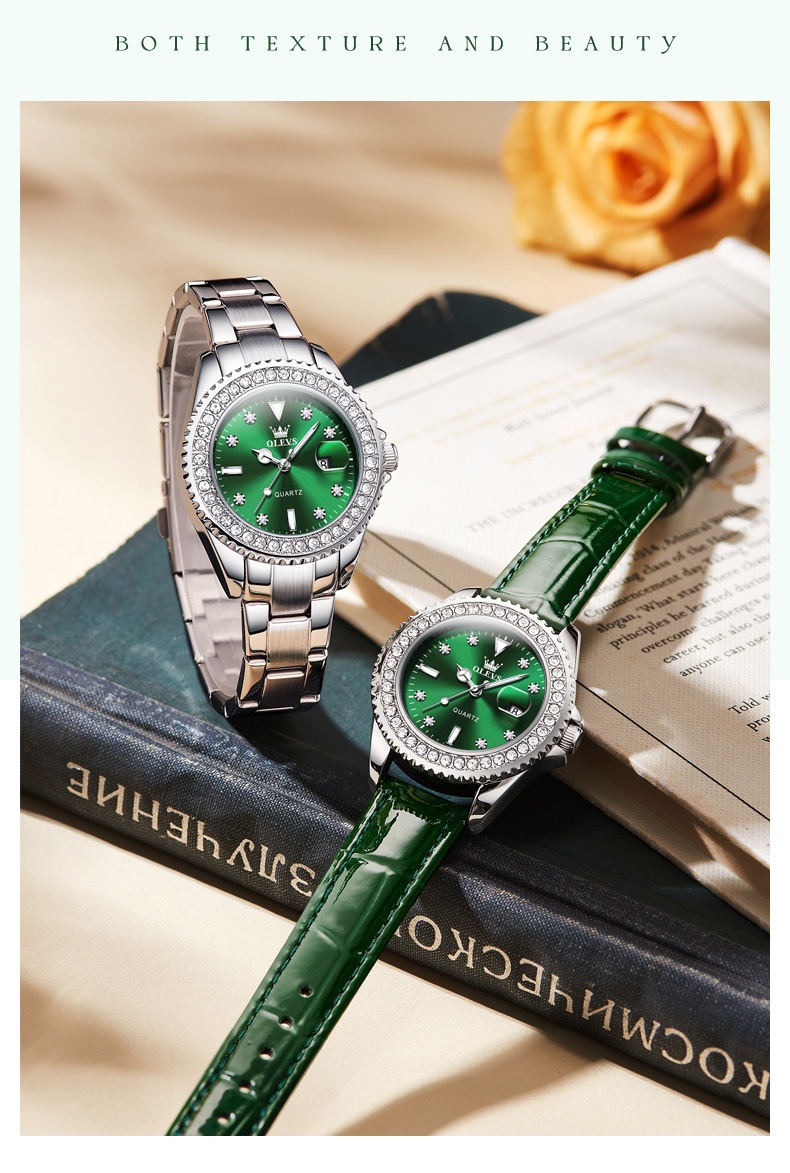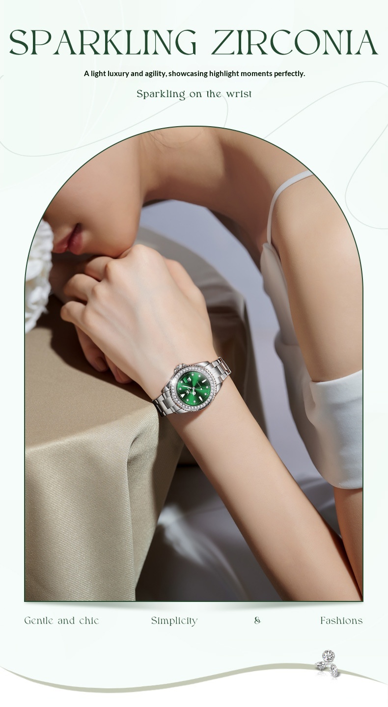 Product information:Colors: Li 9945 steel band natural white (women’s model), Li 9945 steel band natural green (women’s model), Li 9945 green leather strap natural green (women’s model), Li 9945 steel...
