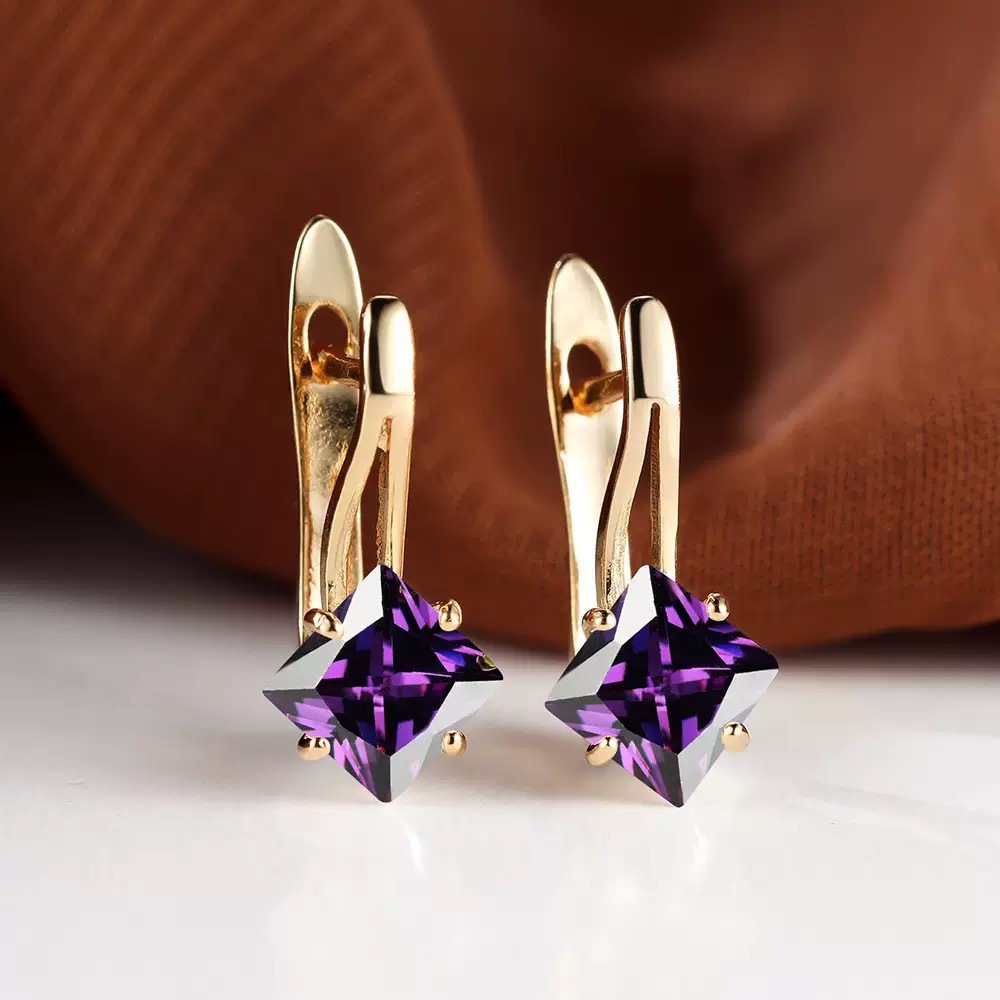 Stylish New Purple Zircon Geometric Earrings