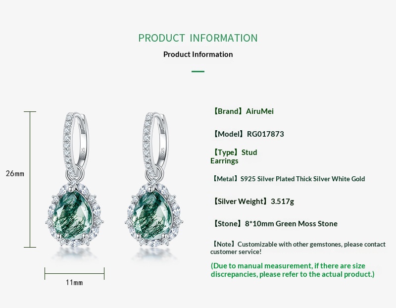 Product information:Processing Technique: Electroplating Color: Earrings ER017872 (Moss Green Teardrop, 8 × 10 mm) Target Audience: Women Material: Silver Purity: 925 Silver Shape: Teardrop Trendy Ele...