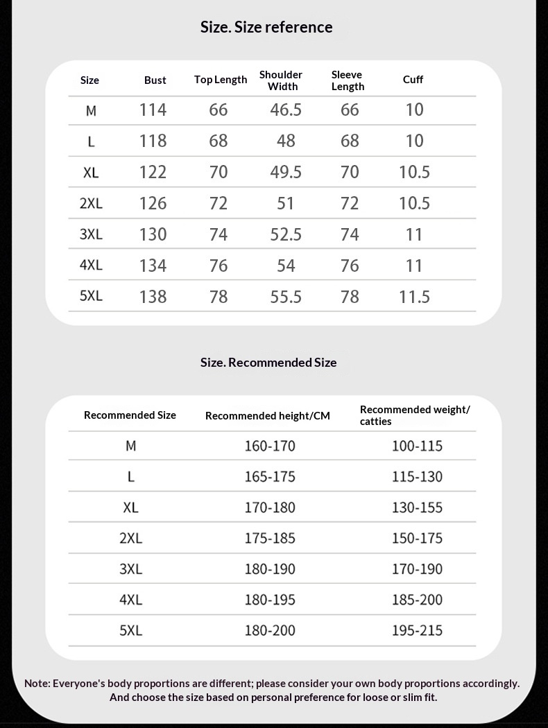 Sizes: M, L, XL, XXL, XXXL, XXXXL, 5XL