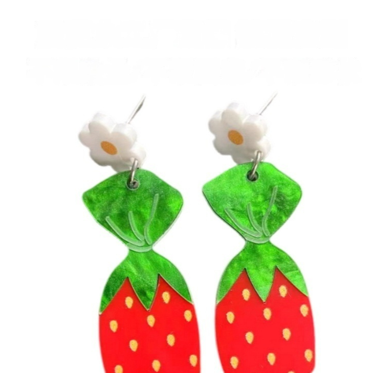 Product information:Processing Method: Printed Color: Red Strawberry Material: Acrylic Design: Fruit Trendy Element: Strawberry Style: Cute Packing list: Earrings*1pairs Product Image:...