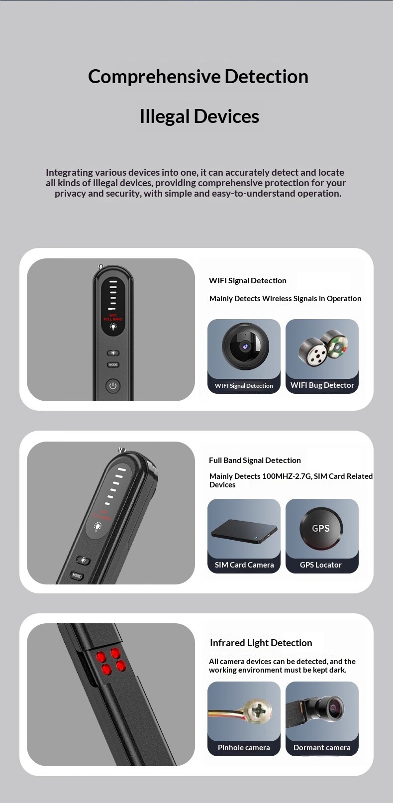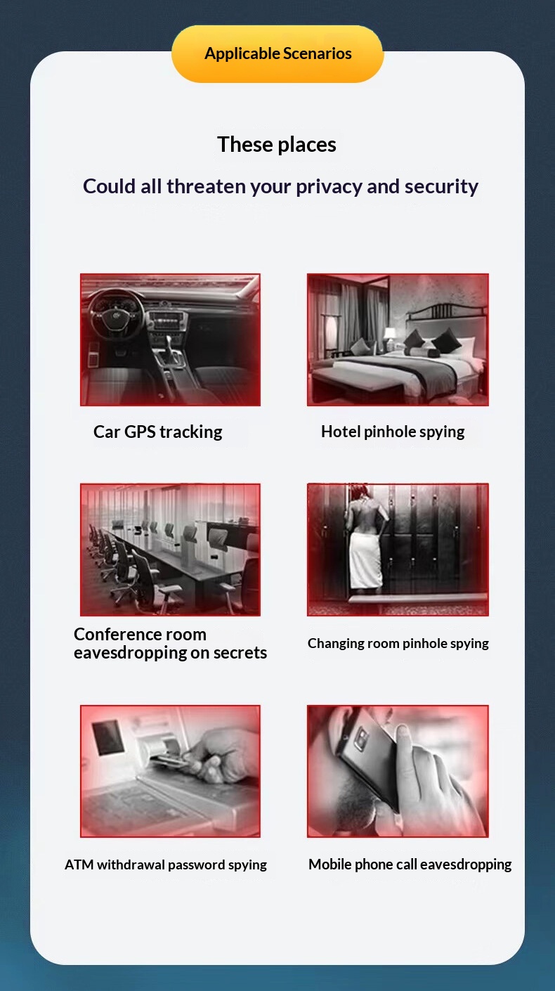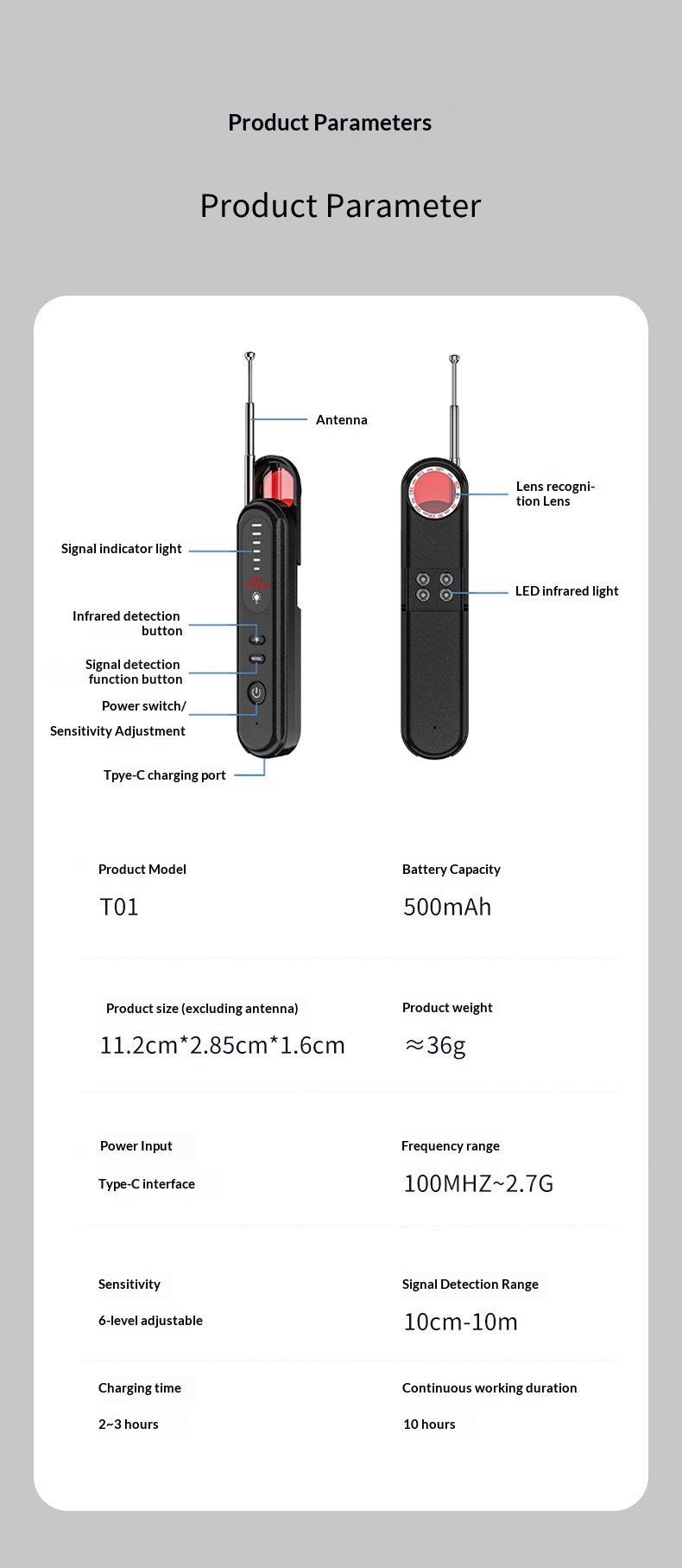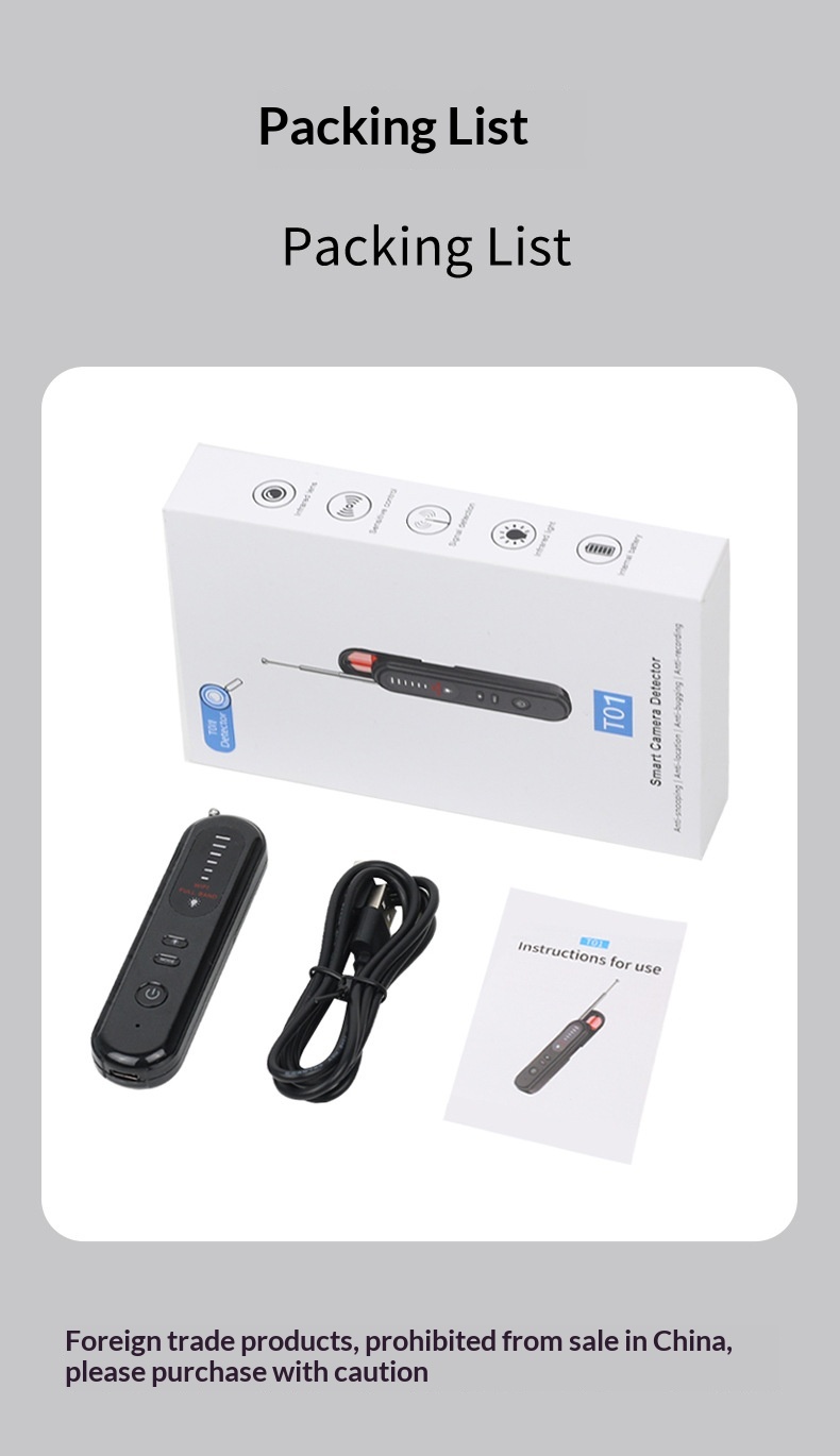 Product information:Applicable Scope: Hotel travel, public entertainment venues, mall fitting rooms Specification: T01 Operating Voltage: 5 External Dimensions: 40*90*11 Packing list: Alloy Detector...
