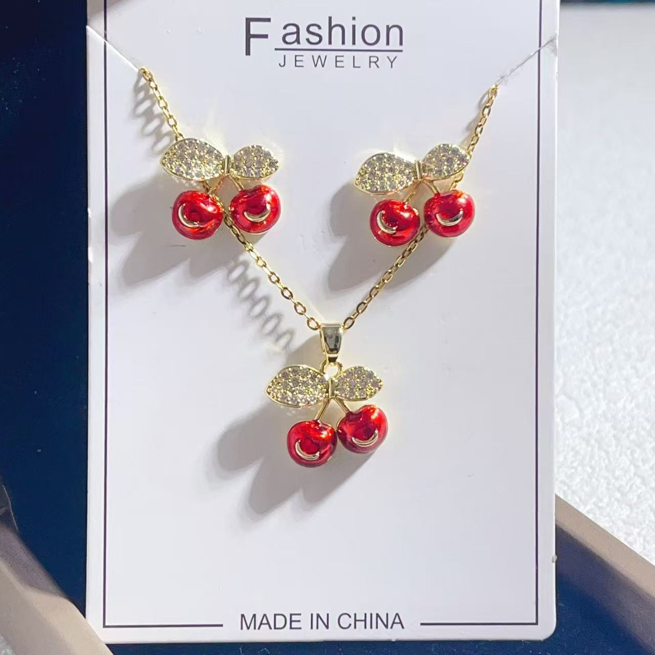 Temperament Cherry Pendant Earrings Jewelry Set