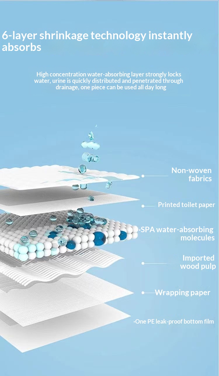 Materials: Nonwoven fabric, bamboo charcoal fiber, tree sap, wood pulp fiber, fluff pulp.