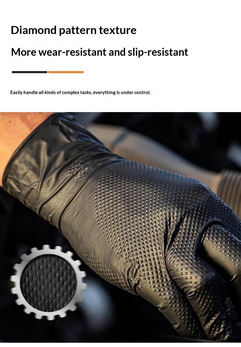 Thickened Diamond-textured Disposable Nitrile Protective Gloves