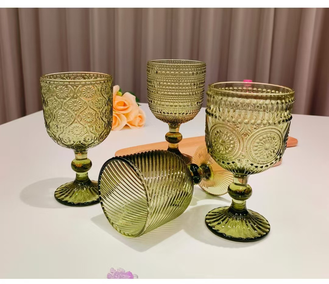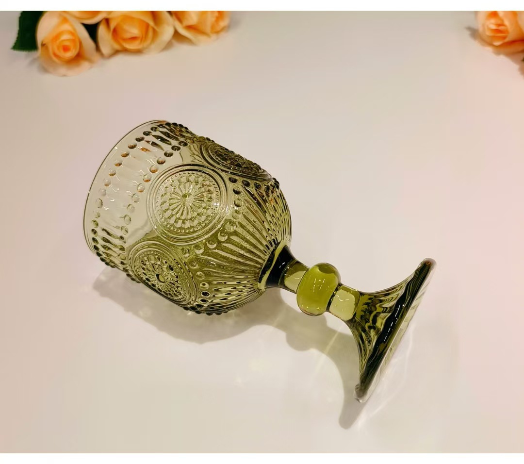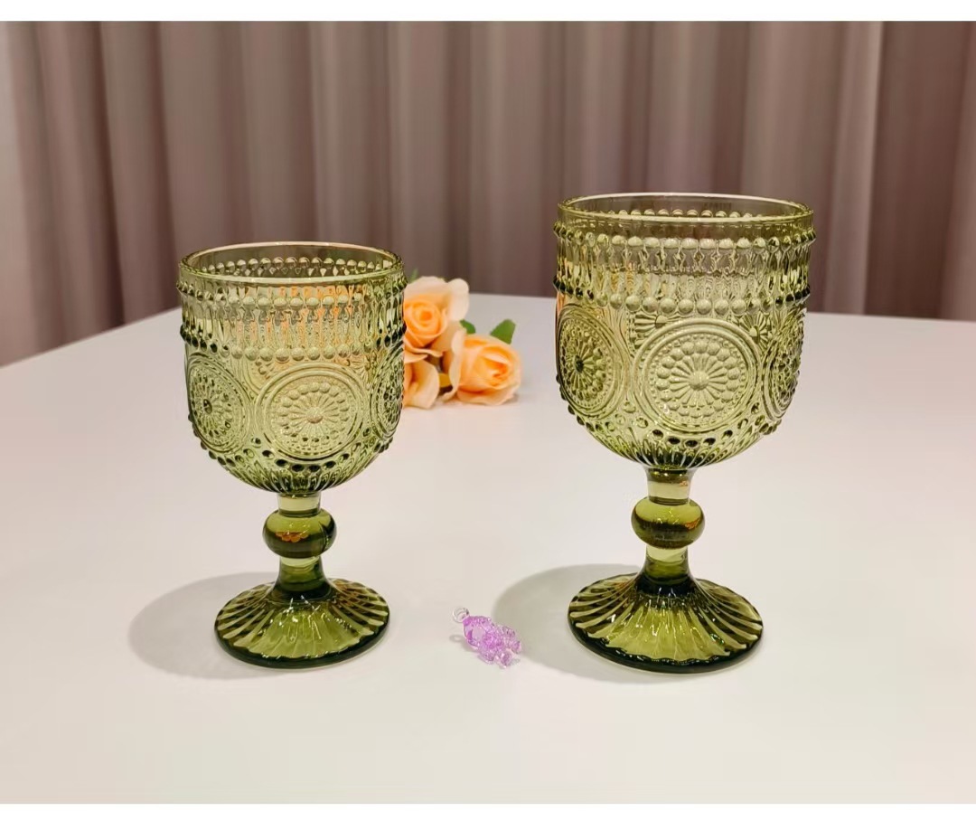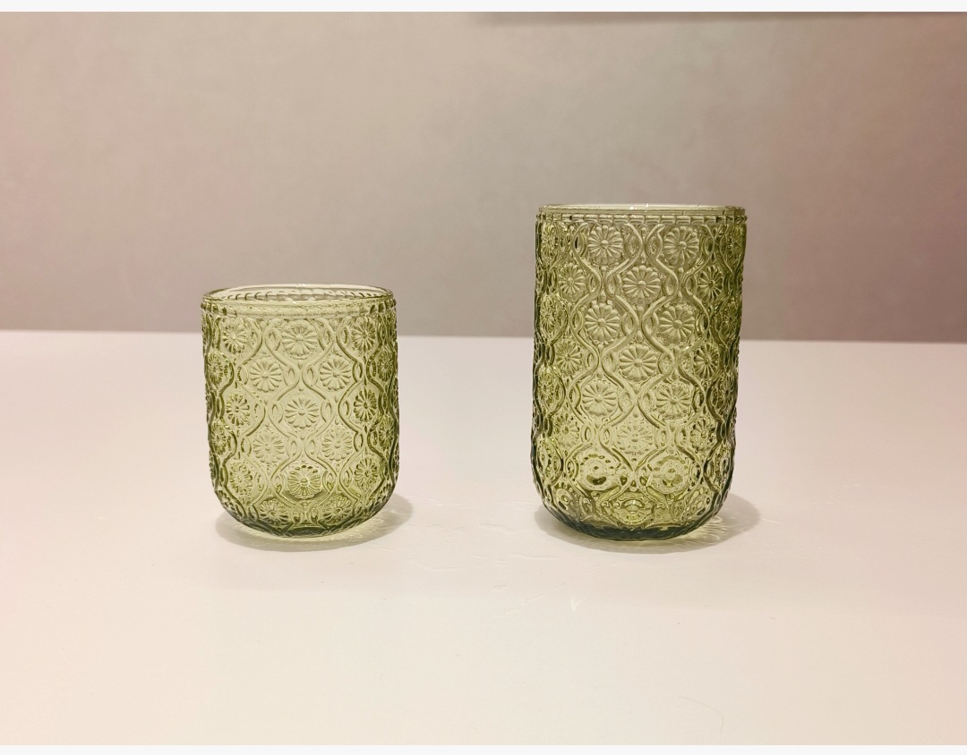 Colors: Green sunflower shot glass, 250 ml; green herringbone shot glass, 250 ml; green crabapple flower shot glass, 250 ml; green polka-dot shot glass, 250 ml; green sunflower wine glass, 350 ml; green herringbone wine glass, 350 ml; green crabapple flower wine glass, 350 ml; green polka-dot wine glass, 350 ml; green sunflower small-mouth cup, 260 ml; green herringbone small-mouth cup, 260 ml; green crabapple flower small-mouth cup, 260 ml; green polka-dot small-mouth cup, 260 ml; green sunflower large-mouth cup, 410 ml; green herringbone large-mouth cup, 410 ml; green crabapple flower large-mouth cup, 410 ml; green polka-dot large-mouth cup, 410 ml.