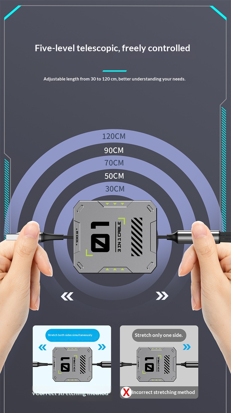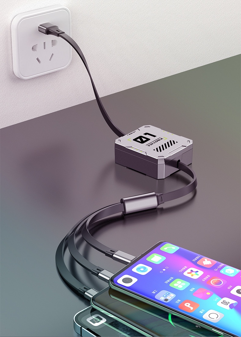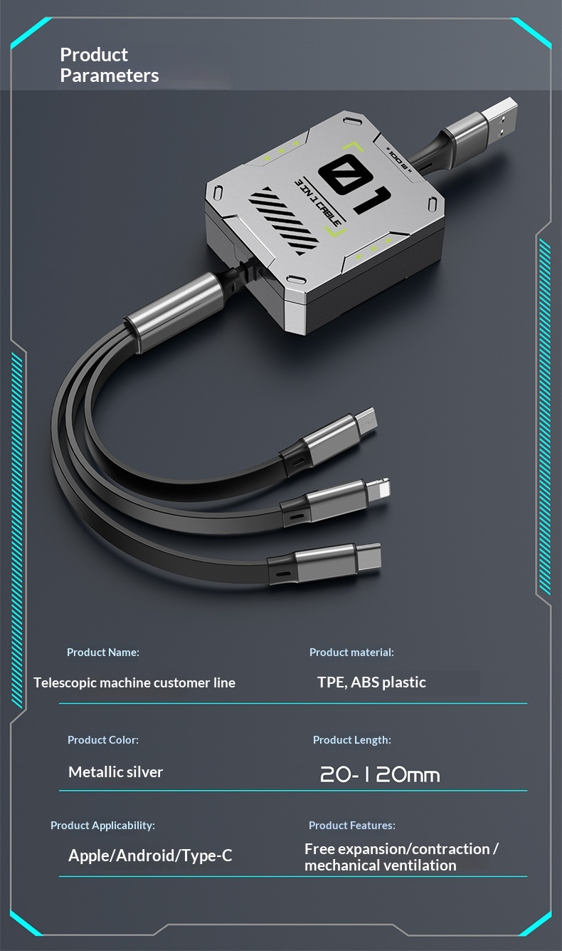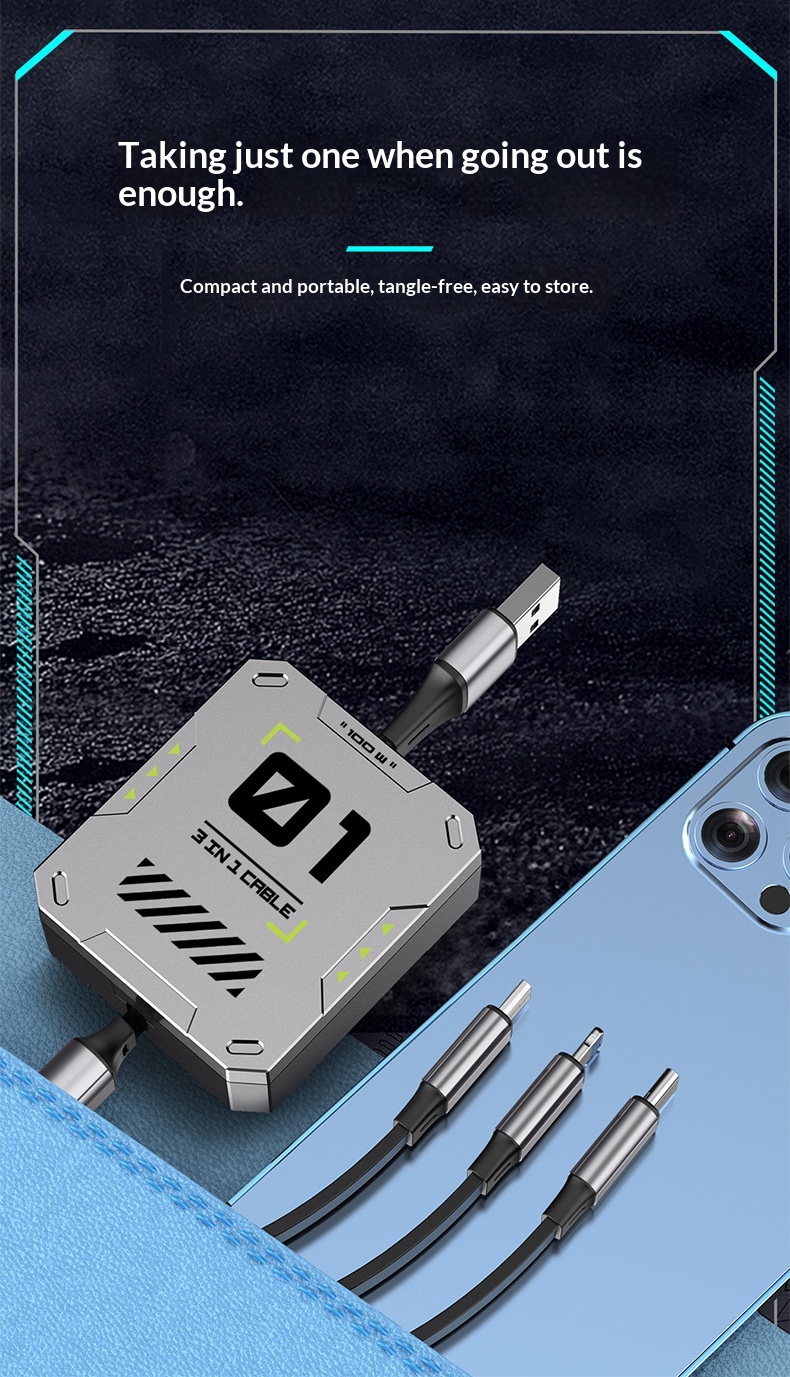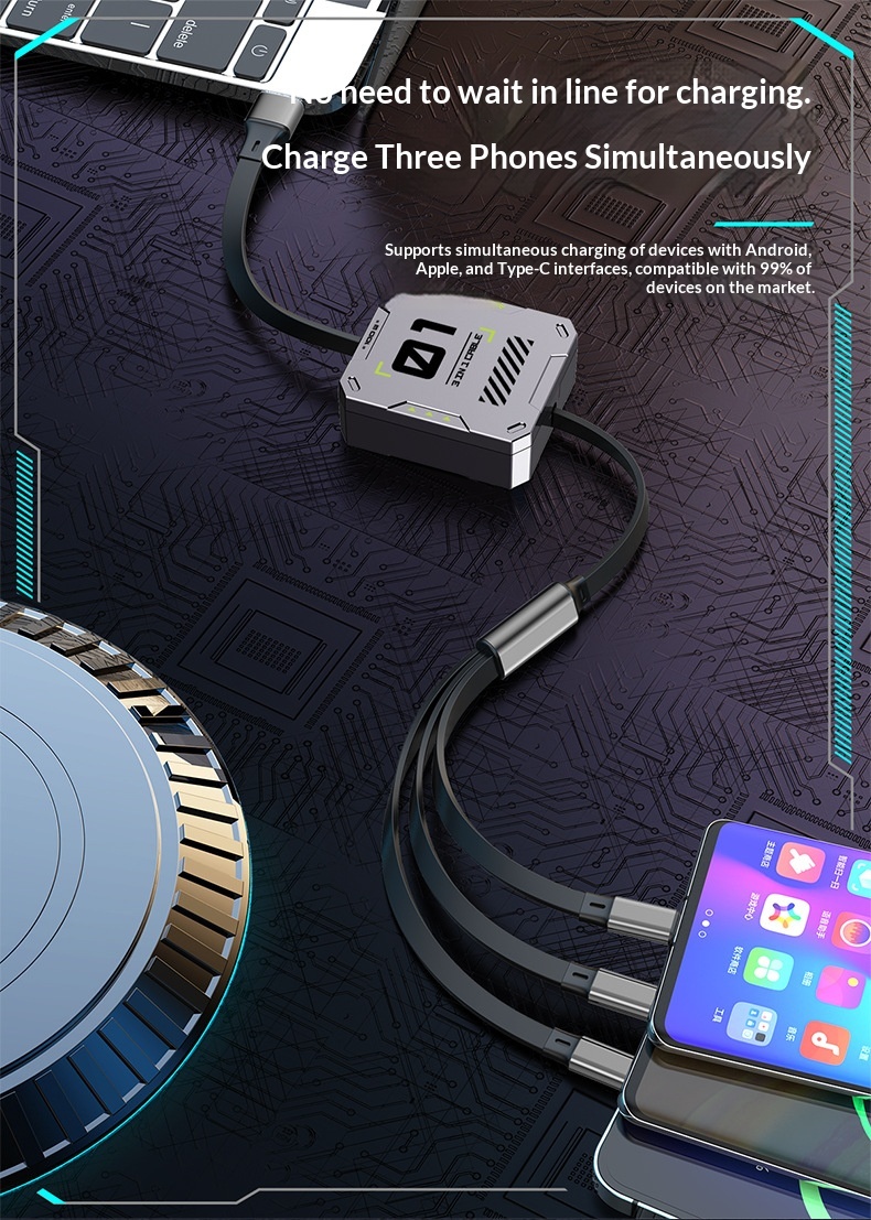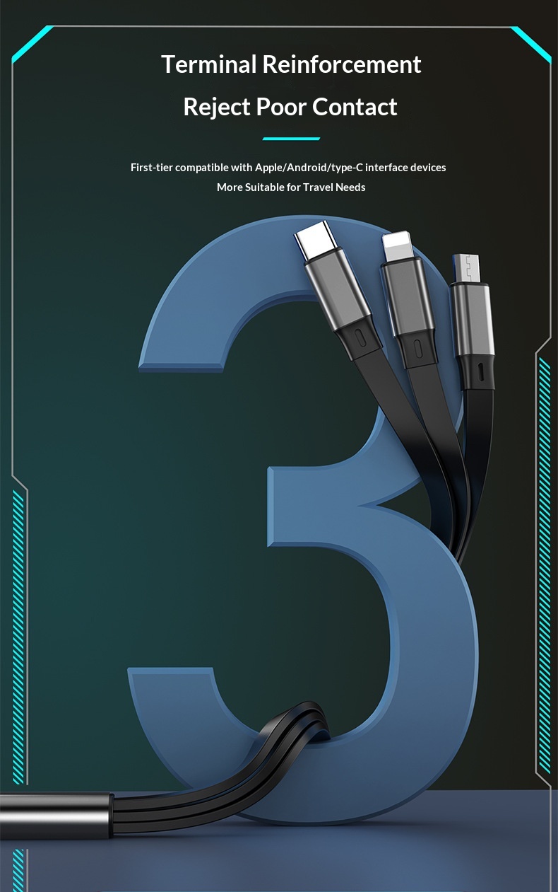 Product information:Features: Fast charging Ports: Lightning, Micro USB, Type-C Length: 1m (exclusive) to 2m (inclusive) Material: Aluminum alloy Color: Black Packing list: Fast charging x1pc Prod...