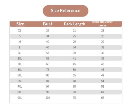 Size: XS, S, M, L, XL, 2XL, 3XL, 4XL, 5XL, 6XL, 7XL, 8XL, 9XL